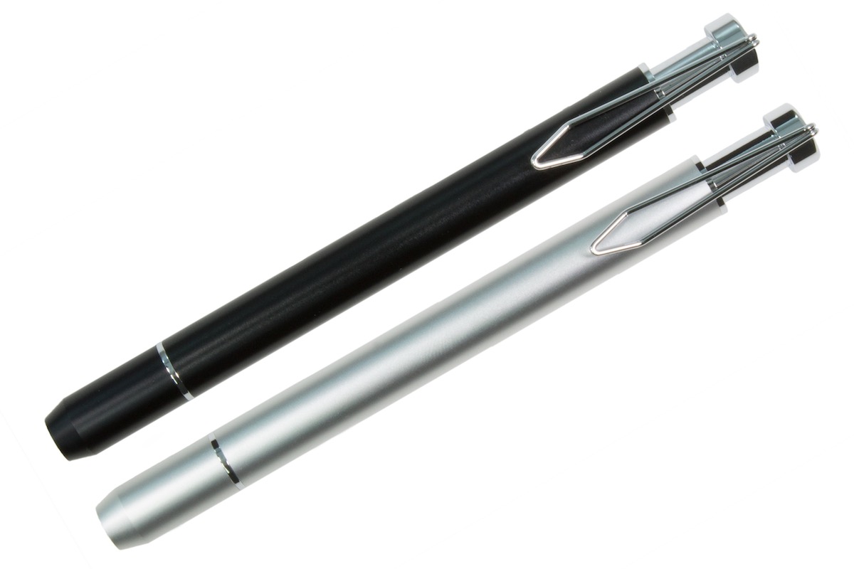 ボールペン感覚でペン先の出し入れができるから、携帯しやすくペン先を傷めません。本体サイズは10mm径×12.5cmで重さ21g、軸部分を従来品より長く太めに設計することで、長時間の筆記でも疲れにくいようにとの配慮も。
