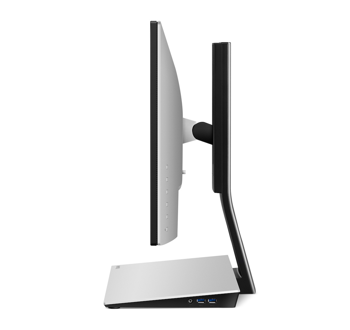 USB Type-C接続を可能にしたドッキングステーションを標準装備。ノートブックを接続し、電源供給やデータ転送、映像出力までケーブル1本で行うことが可能となっています。これなら乱雑になりがちなディスプレイまわりもスッキリ! 背面と台座はメタリック調のシルバーグレーで、どんな作業空間にも馴染む美しいデザインに仕上がっているところもポイント。