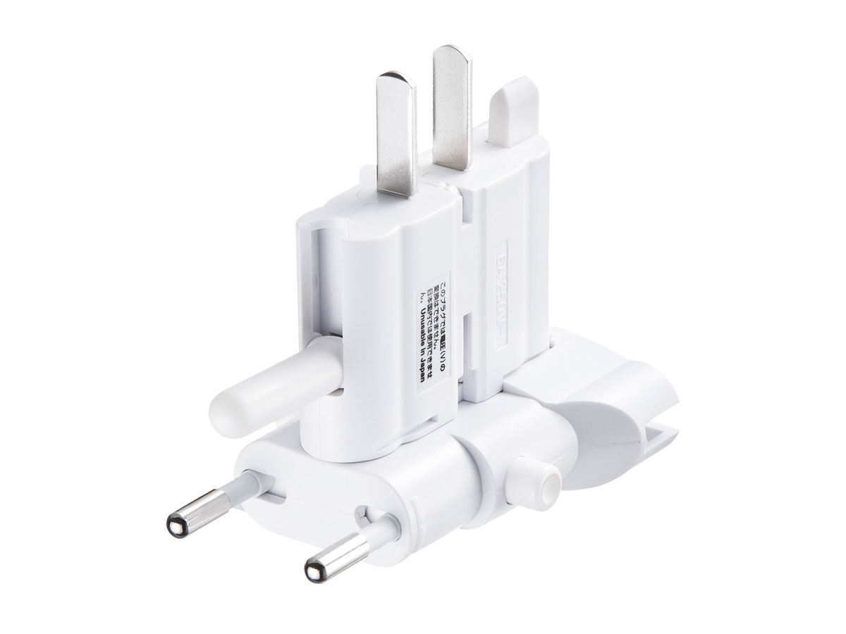 そんなワールドワイドな方には、この万能アダプタがもってこい。一台のアダプタが、ロボットのように分割!変形!合体!をすることで、ほぼ全世界の電源プラグに対応します!