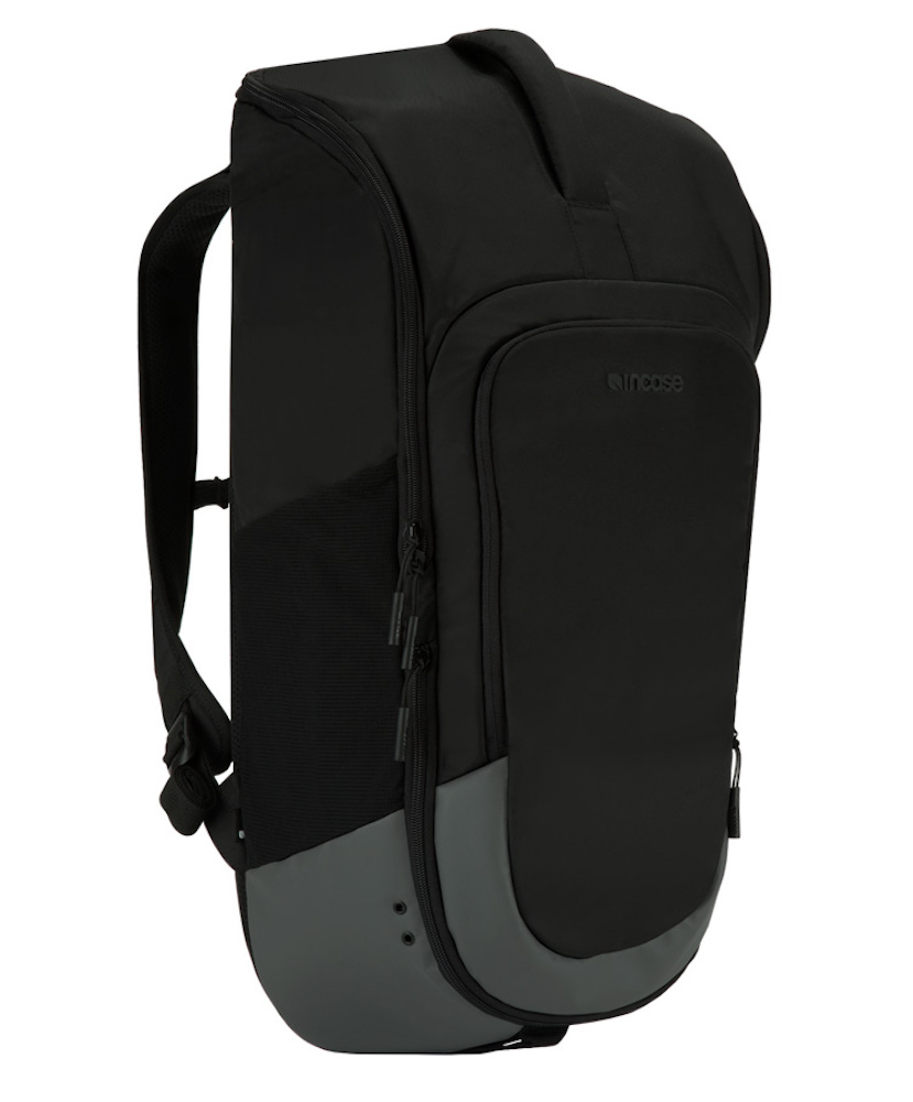 メインコンパートメントにはファスナーで仕切られた15インチラップトップ専用スペースが設けられ、ノートPCやタブレットなどのデジタルデバイスを入れられます。バッグ背面部とショルダーベルトは通気性のあるメッシュ素材と、衝撃吸収性、防湿防臭効果がある「Ariaprene」素材の二層構造。熱がこもりにくく、快適な背負い心地とフィット感を実現しています。