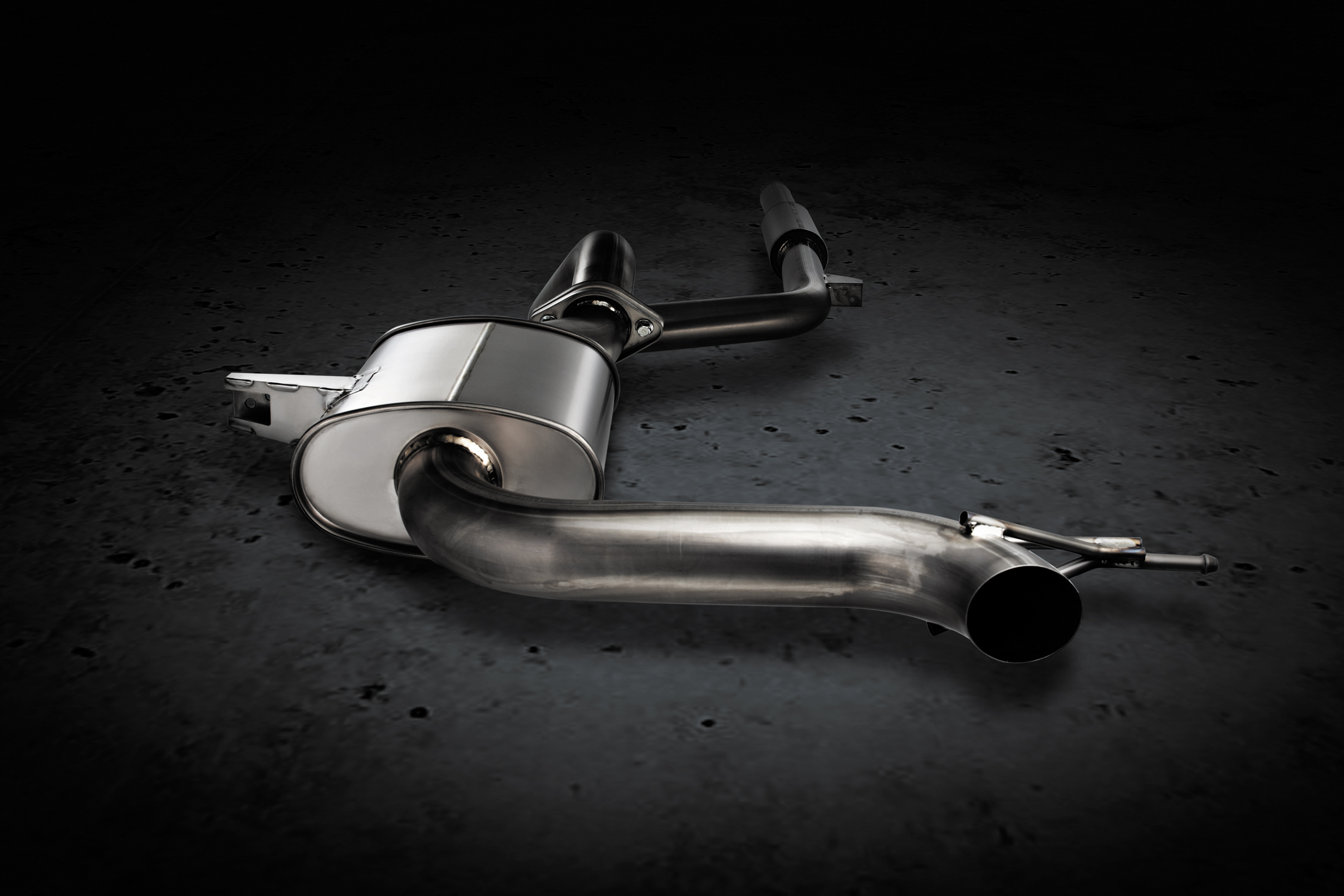 専用のチタンマフラー(同じく、メガーヌ R.S.用)は、ノーマルと比べてトルクが1.8%増、馬力は1.6%アップ。また、すべてのエンジン回転域で排気の抜けが良くなることから、レーシングカーを思わせる豪快なエキゾーストサウンドを響かせます。