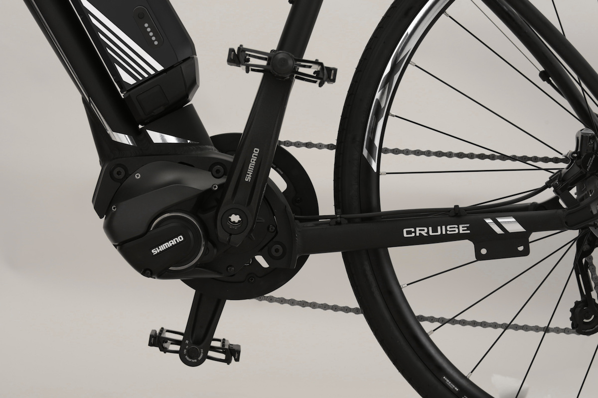 「CRUISE」は、アシストコンポーネント・STEPS E8080を国内で初めて搭載したモデル。これは、スポーツバイクコンポーネントの世界トップブランド・SHIMANOが2014年に欧州向けに開発し、研究開発を重ね日本国内向けに新開発したアシストコンポーネントです。