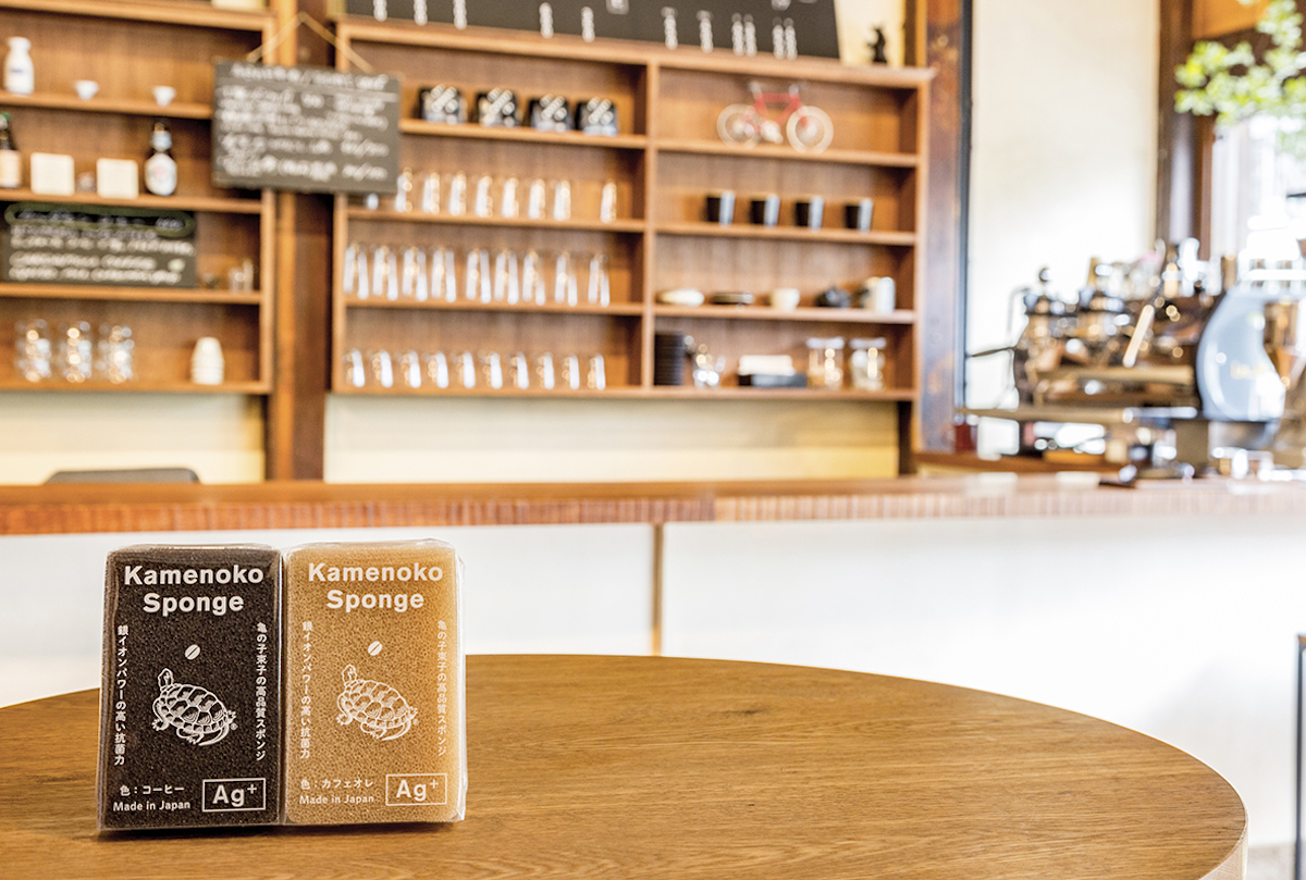 スポンジというと、ピンクやグリーンなど発色のいい色が一般的に多いですが、今回のような落ち着いたトーンのスポンジはありそうでない色合い。どちらもキッチンまわりのアクセントとなりそうなカラーです。また、亀の子スポンジといえばそのまま置いておきたくなるようなスタイリッシュなパッケージデザインも特徴。今回のテーマにちなんで中央の星マークをコーヒー豆に変更しているのもポイントです。こういう細かいところへの配慮がまたオシャレですね。