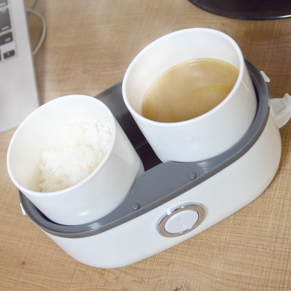 1つの茶碗で、最大約0.65合(約120ml/茶碗大盛り約230g)が炊けるというからなかなかのボリューム。2つ同時に炊き上げることはもちろん、ご飯以外にも生野菜やレトルト、味噌汁などのおかずも一緒に温められます。ビジネスバッグにスッポリおさまるW225×D135×H155mm、重量1090gで、4980円(税込)。お弁当のご飯は会社で炊く…が、これからのスタンダードになるかもしれません。