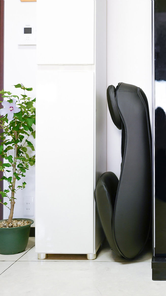 使用する際は、好きなイスの上に設置するだけ。重さは11.3kgなので、女性でも持ち運び可能。通常のマッサージチェアだと男性でも移動に苦労するほどの重さでしたが、これなら自由な場所で使えます。