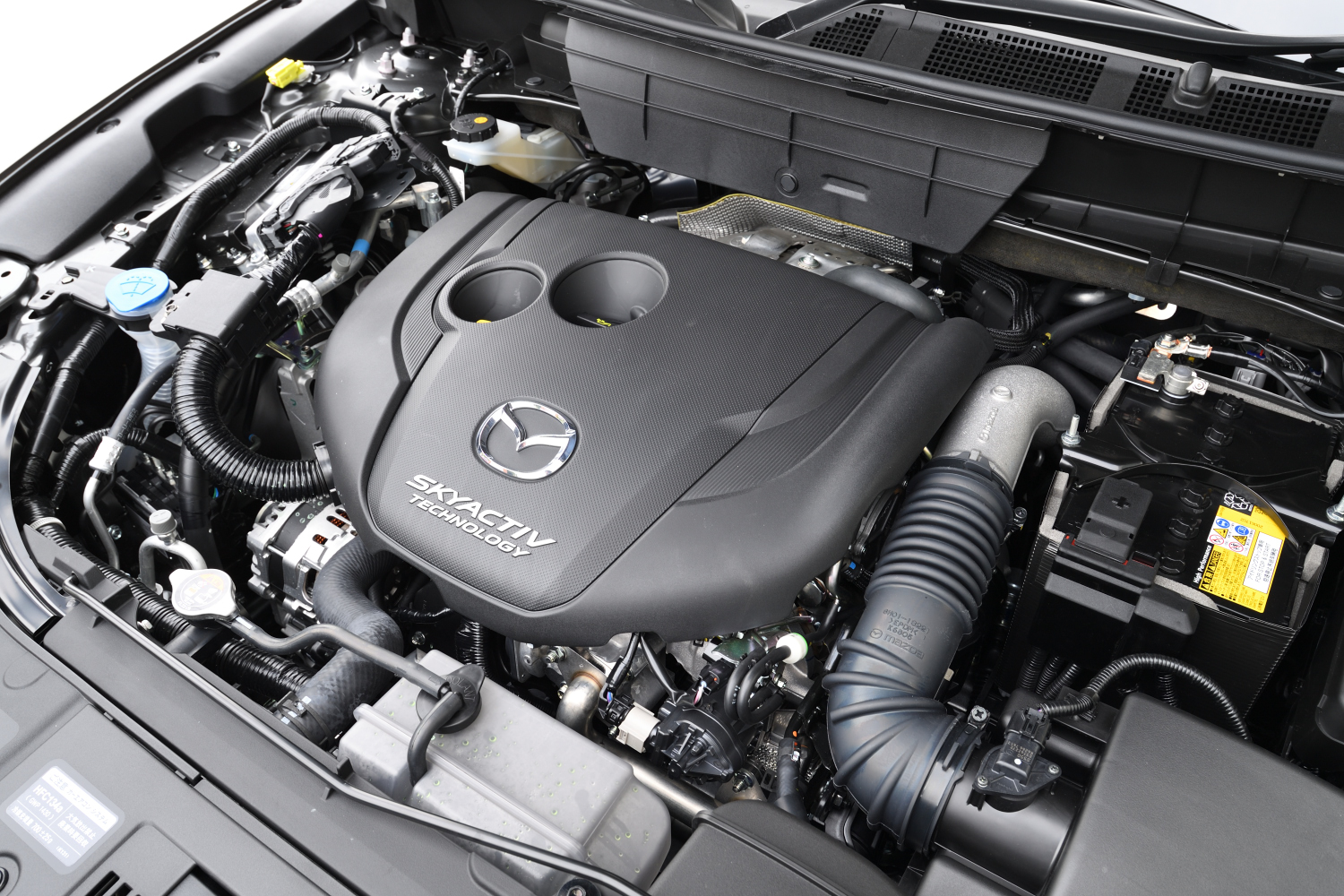 エンジンは、CX-5にも搭載される2.2リッターの直4ディーゼルターボ“SKYACTIV-D(スカイアクティブ-D)”のみの設定ですが、CX-8へ搭載するに当たって、車重や乗車定員の増加を考慮。新型ターボチャージャーの採用や、インジェクターやピストンなど燃焼に関する細部の見直し&改良により、最高出力はCX-5の175馬力から190馬力へ、最大トルクは同じく42.8kg-mから45.9kg-mへと引き上げられています。