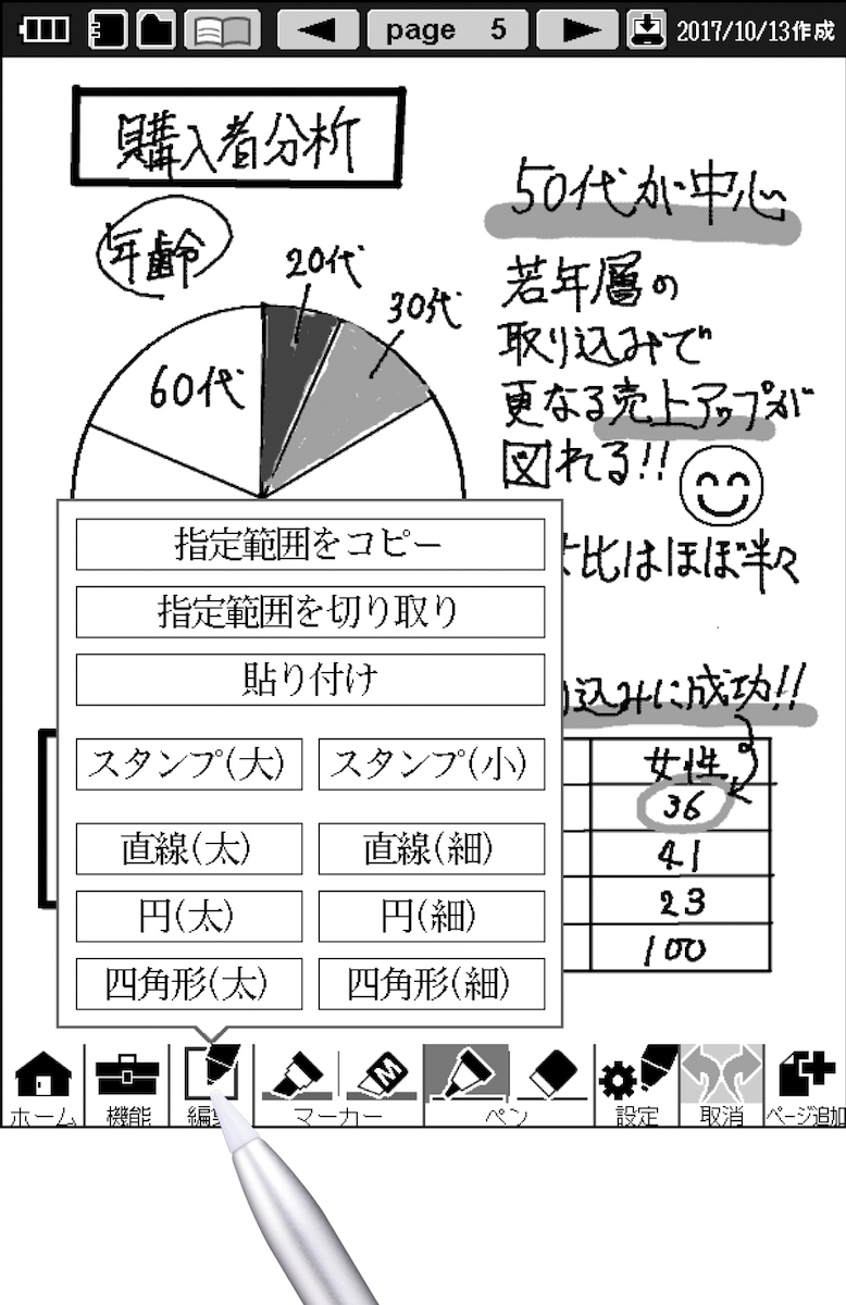 また、日付や時計と日めくりカレンダーなどが表示できて、卓上時計・カレンダーとして使えるデスクトップモードが新たに加わり、ノートとして使わない時にも活用シーンが広がっています。指定範囲の移動・コピー・図形描画などの便利な編集機能が従来機に比べ大幅に追加され、入力・編集がより直感的に使いやすくなっています。価格はオープンプライスですが、1万8000円(税別)くらいになるようです。