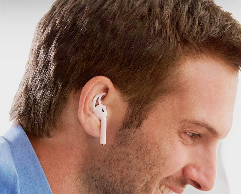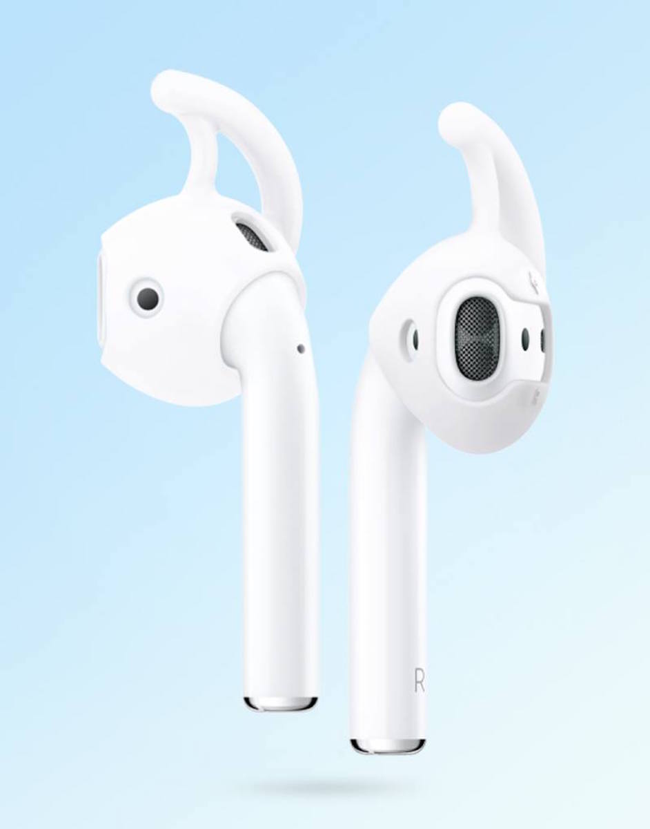 そこで役立つのがAirPods用イヤーフック「RA200」。やわらかいプレミアムシリコン素材で、AirPodsの頭部分にぴったりかぶせる形のイヤーフックです。