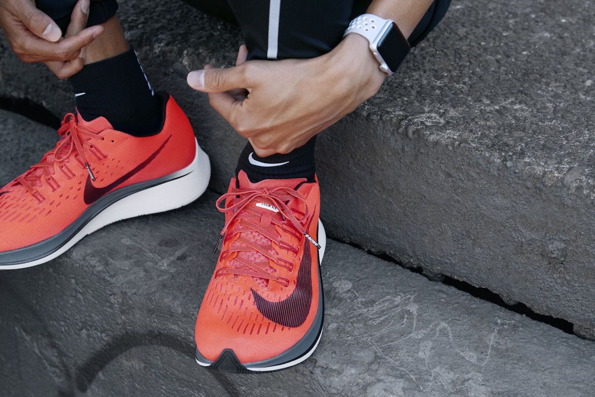 「ナイキ ズーム ヴェイパーフライ 4%」は、今年5月に開催されたイノベーションプロジェクト「Breaking2」のために開発されたランニングシューズで、そのコンセプトは「マラソンで2時間切りを目指す」という壮大なもの。ナイキのシューズでは屈指の速さを誇る”ナイキ ストリーク6”との比較試験に基づき、ランニング効率を平均4%向上させることを目標に誕生しました(これが”4%”の由来)。