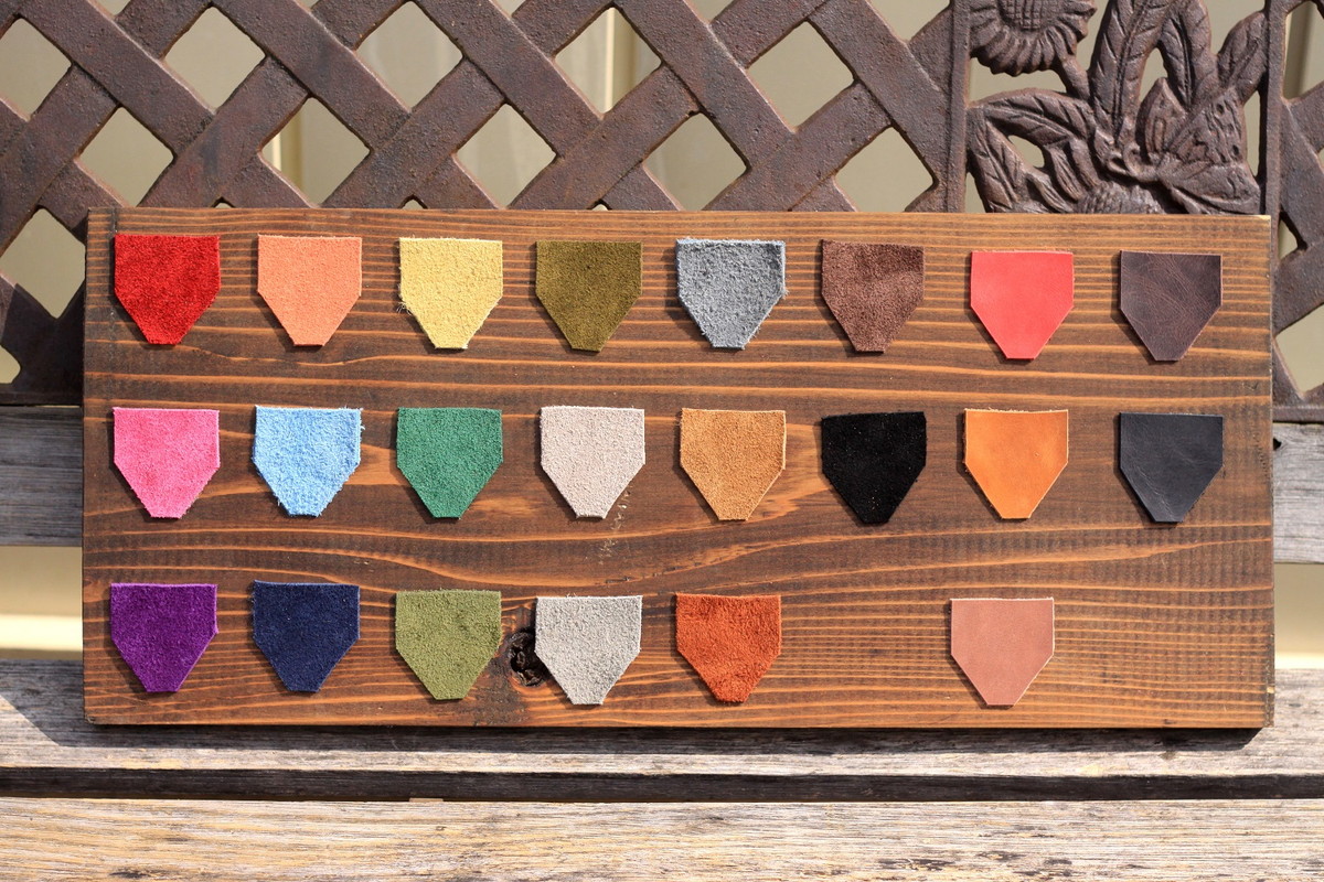 革には国産牛革を使用。マンタと相性の良いスエードレザー17色と、表面がスベスベで触り心地の良いスムースレザー5色をラインアップ。ヒモも13色から選べます。