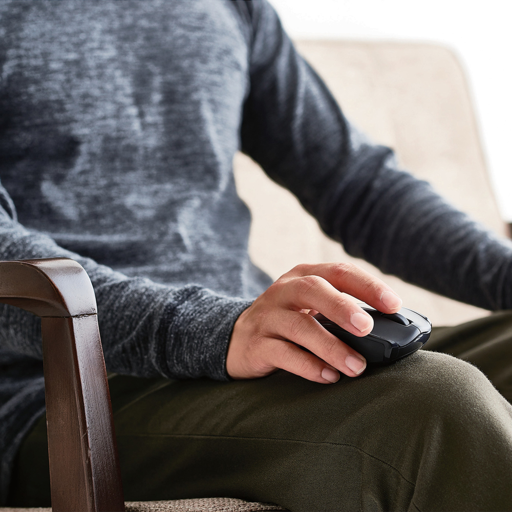 そこで生まれたのが、エレコムのAndroidスマートフォン向けワイヤレスVRマウス「M-VRF01BK」。高精度センサーにより、ソファの上や服の上など場所を選ばずカーソルを動かすことができ、画面の縦横に応じてカーソル動作を90度回転させられる、VR操作に特化したマウスです。