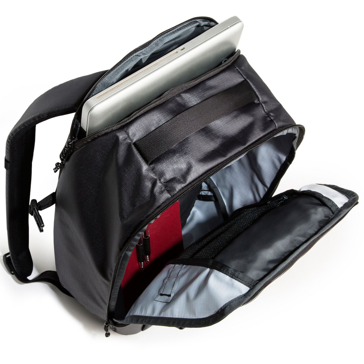 背負って楽々移動できるバックパックながら二つ折りのクラムシェル型になっているので、たっぷり収納できて荷造りもかんたん。上部に設けられた大きな開口部のおかげで、下の方に入れたモノが出しづらいなんて悩みも解消です。