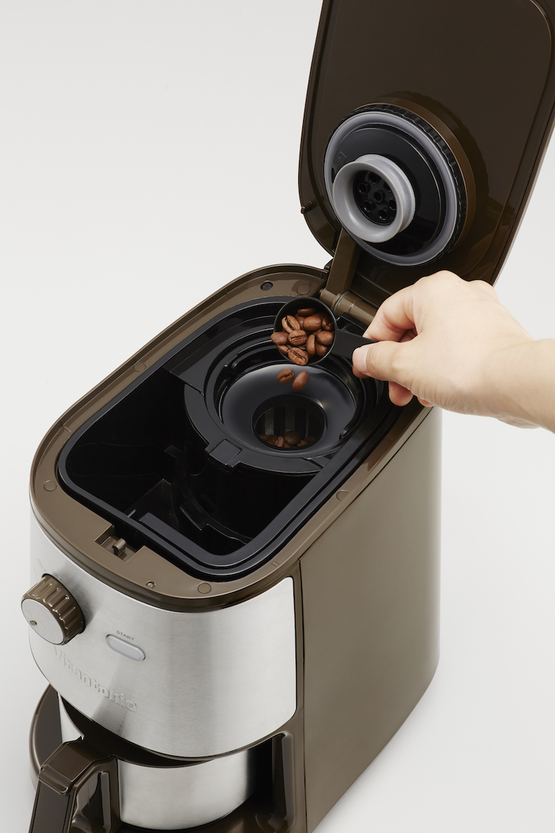 豆をセットしてから約5分で、最大600ml(コーヒーカップ4杯分)を抽出できるので、忙しい朝や来客時にもスピーディーに対応。好みに合わせて豆の粗さは2段階から選べる本格派です。コーヒー粉からの抽出も可能。W178×D305×H288mm、オープン価格です。