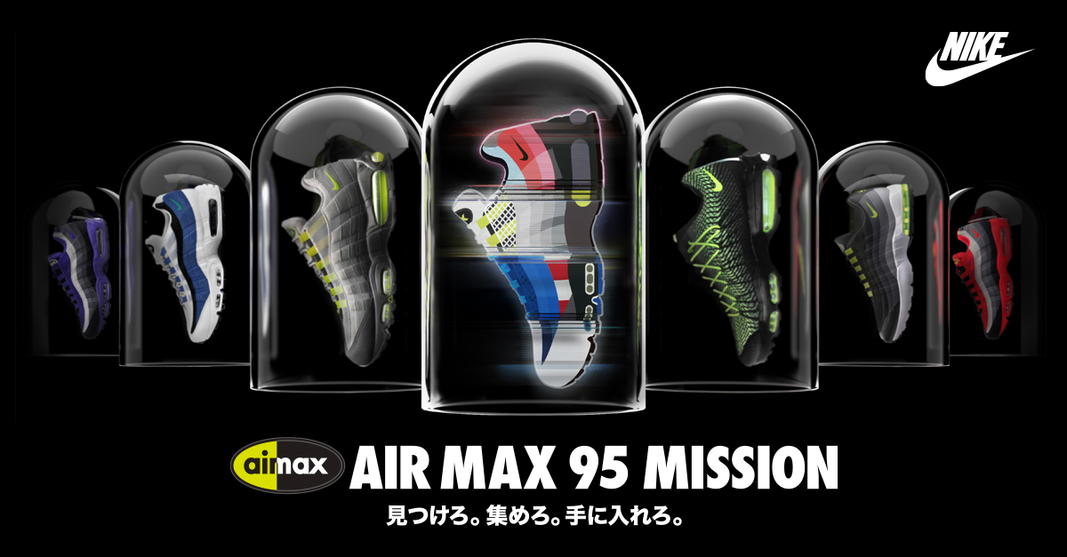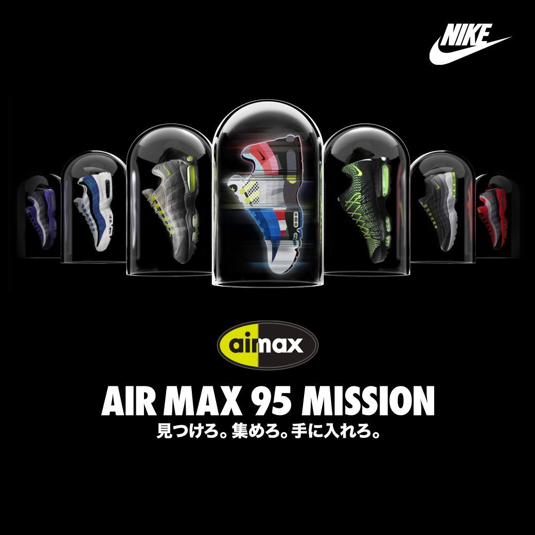 同時に、スマートフォンを使った参加型イベント「AIR MAX 95 MISSION」(NIKE.COM/AM95MISSION)も開催。渋谷・原宿・新宿・上野エリアのスニーカーショップやストリート上に散りばめられた全57モデルのDIGITAL AIR MAX 95を探し出し、スコアを貯めていくゲーム感覚のイベントだ。合計スコアの上位入賞者には、特別アイテムも用意。