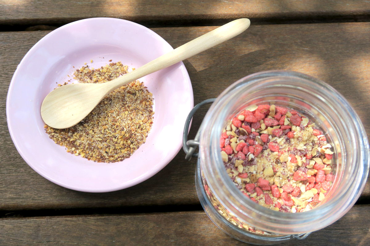▲ピンク色のプラリネアーモンドが華やかさをプラス