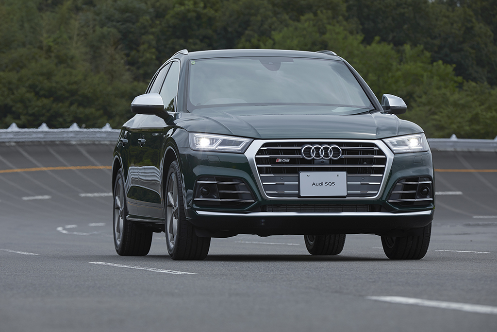 SQ5は、エクステリアにも専用設計のシングルフレームグリルやバンパー、20インチのアルミホイールなどを装備。インテリアも専用のステアリングホイールやステッチの施されたレザーシートなどで、スポーティな雰囲気を強めています。