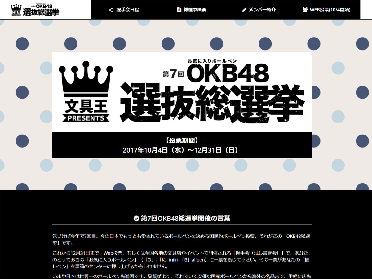 世は総選挙の話題で持ち切りですが、実はその裏でもうひとつの選挙戦が始まったのをご存知ですか? その名も「OKB48総選挙」。推しメンならぬ“推しペン”に投票し、筆箱のセンターを決めるというこの総選挙。なんと今年で7回目を迎える、国民的(?)ボールペン投票大会なのです。
