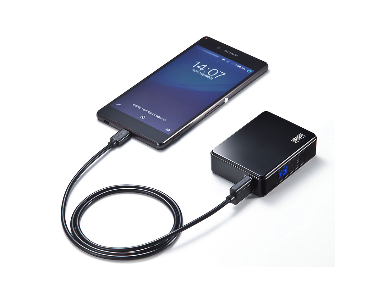 サンワサプライが発売を開始したモバイルバッテリー「BTL-RDC9BKN」と「BTL-RDC10BKN」は、デジタル表示機能により電池残量が一目でわかる画期的機能を搭載。1%刻みでの表示なので、スマホやタブレットへの給電可能回数が簡単に確認できます。