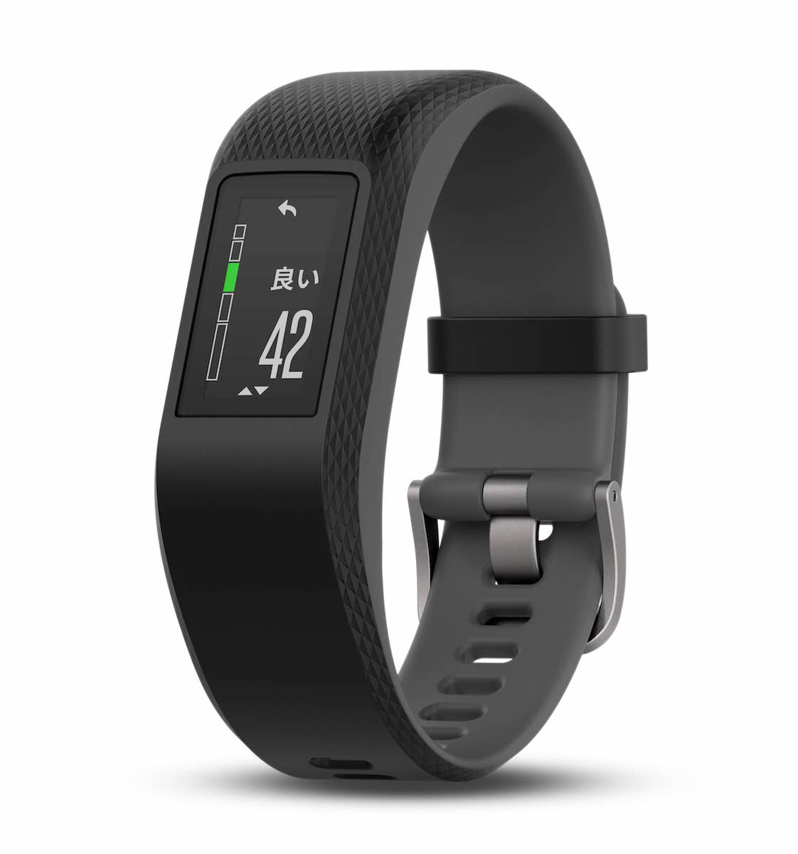 また、本体に搭載されたリストバンド式光学心拍計機能を利用することで、運動能力の指標といわれる「VO2 Max(最大酸素摂取量)」を計測が可能。自分のフィットネスレベルを的確に把握できます。さらに、心拍数の変動からストレスレベルをモニタリングし、日々の生活における潜在的なストレス要因を認識することも可能です。