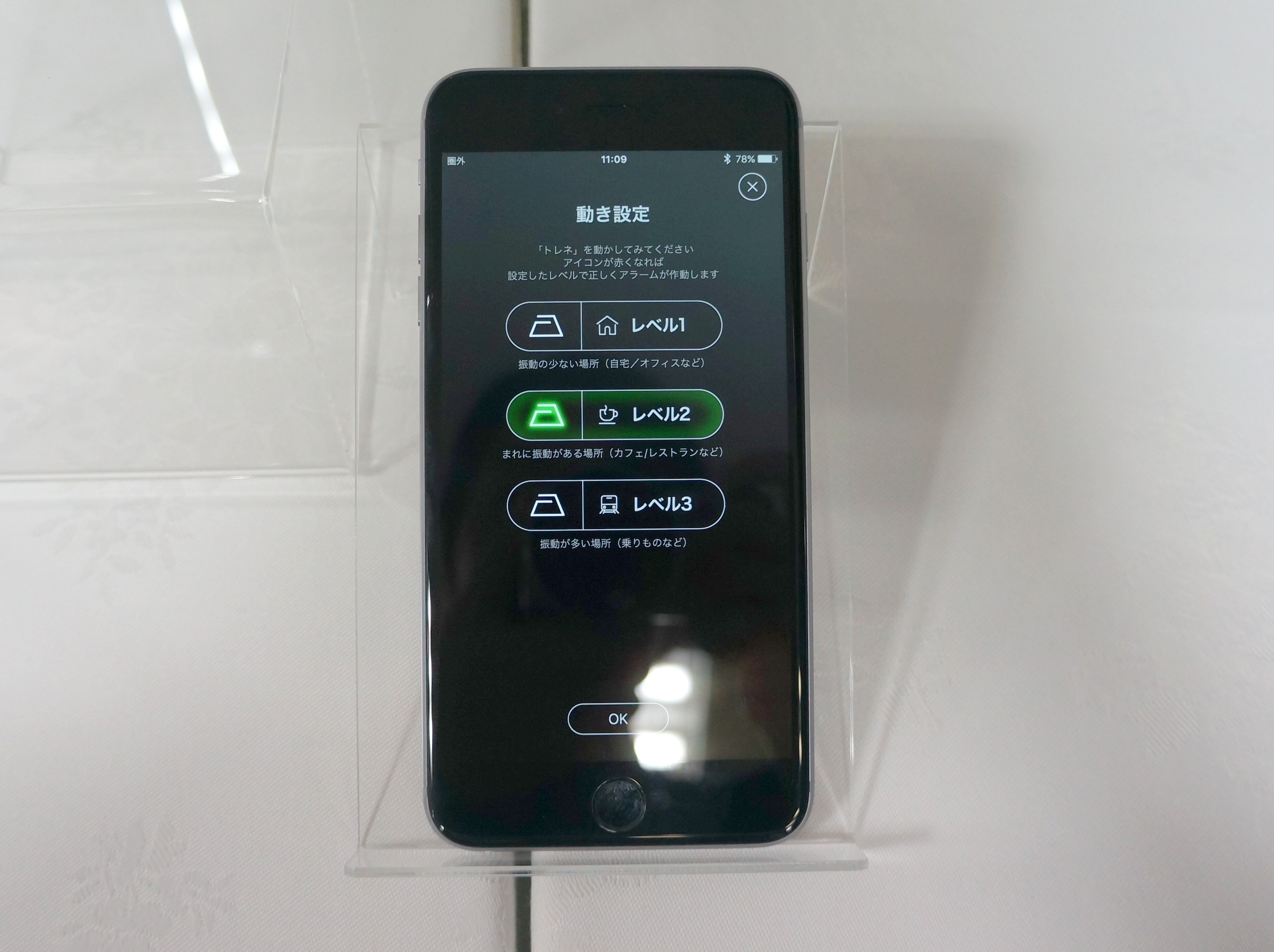 なお、「トレネ」は席に戻ってくるとスマホとの通信が再び開始され、見守りが自動的に終了します。着席中に振動が伝わってもアラームは発動しません。オン/オフをその都度切り替える手間がかからないのもいいですね。
