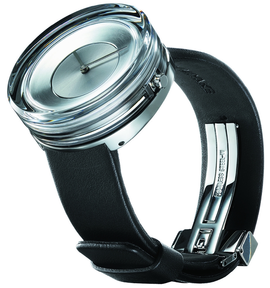 今回のモデルを手掛けたのは日本を代表するデザイナーであり、ガラス素材によるさまざまな作品を発表している吉岡徳仁氏。強化処理された無機ガラスを美しい輝きが生まれるように削り出し、厚いカバーガラスに加工。透明なガラスの底に閉じこめられたかのような時計の針は、まるで時が止まったかのような静寂感を感じさせます。