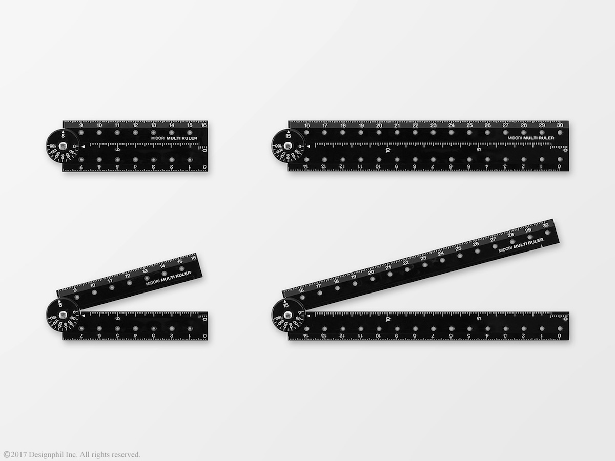 デザインフィルが展開しているブランド・ミドリより、折り畳み式定規のロングセラー「マルチ定規」の新色が登場。10月18日より発売が開始されます。既に発売されている透明・ピンク・青の3色に、今回新たなラインナップに加わるのがスタイリッシュな “黒”。