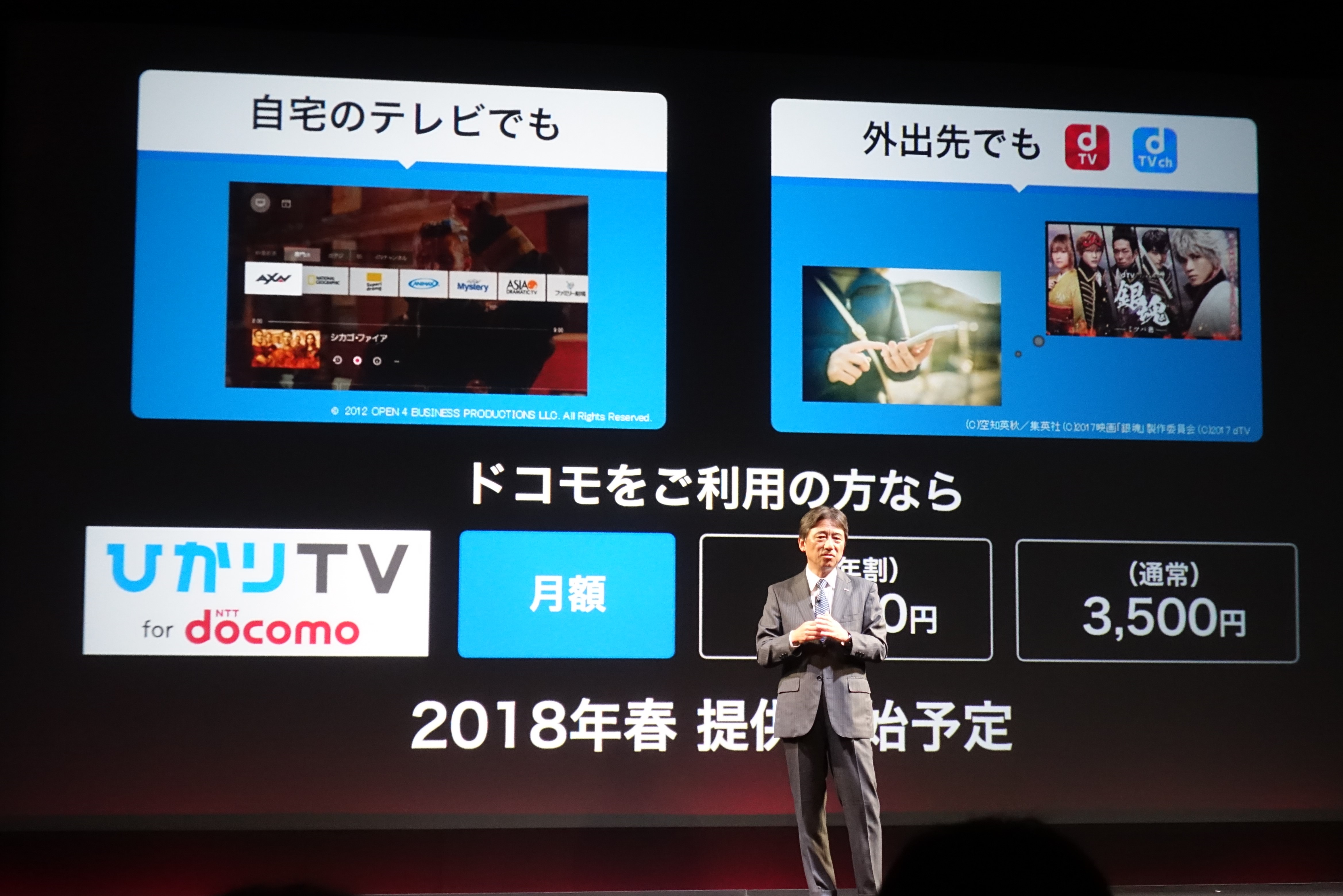「dTVチャンネル」は、月額780円で専用チャンネルがスマホで見放題の動画配信サービス。加えて、自宅のテレビで楽しめる映像配信サービスの「ひかりTV」も2018年春より提供開始予定です。