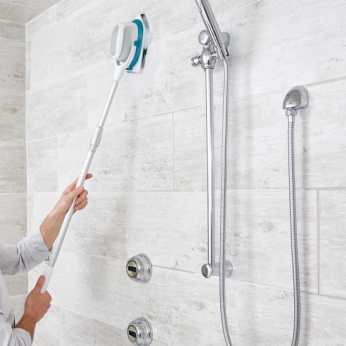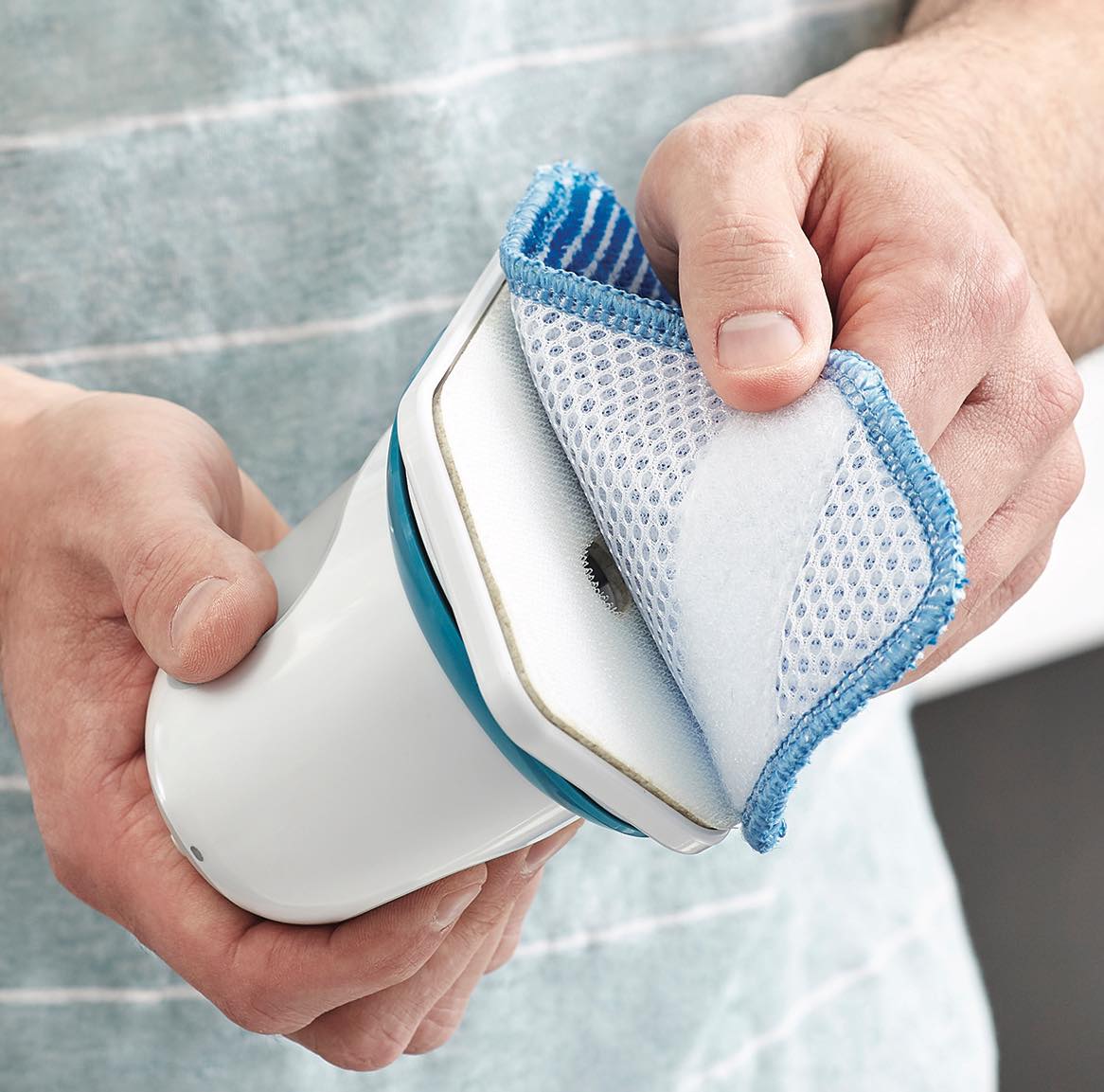 電動ドリルで有名な世界最大の電動工具製品メーカー、ブラック・アンド・デッカーがリリースする、アメリカ生まれの「スピーディスクラバー」。電動工具のサンダー(研磨機)をヒントに設計された独自のマウス型で、片手で持ちやすく簡単に水回りの掃除ができます。手持ちだけでなく、付属の0.7~1mまで伸びる延長ポールを組み合わせることで、床や壁、天井など手の届きにくい場所にも使えます。
