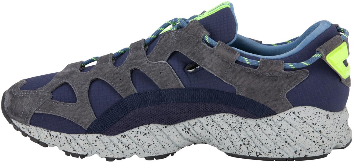 「GEL-MAI」は、1990年代に販売していたランニングシューズ「GEL-MAI」の復刻盤。 足の形状にあわせてよりフィットするように、アッパーと靴ひもを結ぶ位置をアシンメトリックに設計し、巾着のように一点で足の甲から足首まで締められるようにした独特なデザインと機能構造が特徴です。ミッドソールにアシックスが独自に開発したスポンジ材「fuzeGEL」を搭載しています。