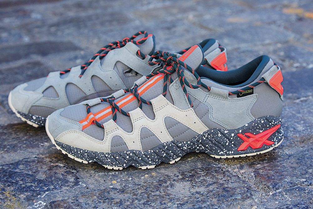 「GEL-MIA G-TX」は、 アッパーにオリジナルのハイテク感を残しながら、防水・透湿性に優れた GORE-TEXファブリクスを搭載したモデルです。差し色が効いた個性的なカラーリングは、さまざまなシーンで楽しめます。