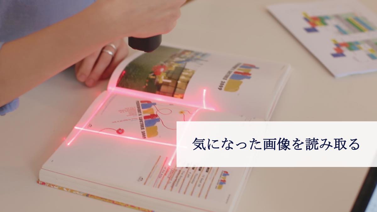 操作は簡単。人間工学に基づいた形のスティックを握り、好きなシナリオを選択して、レーザーで範囲を決めて上部のボタンを親指でぽちっと押せばスキャン完了。本体内蔵メモリーに2000ページまで保存が可能です。