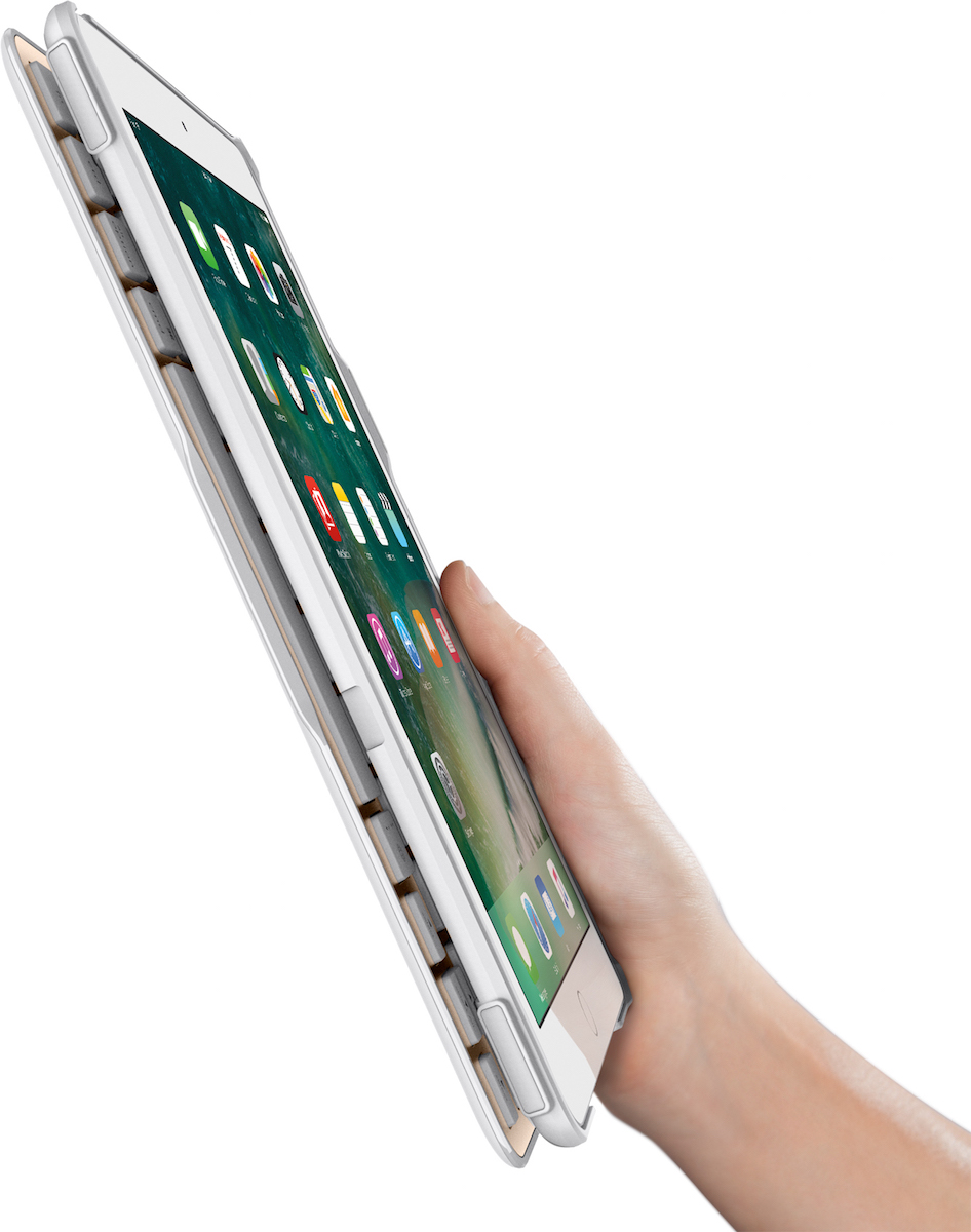 しかも、スマートセンシングテクノロジーとオートウェイク機能により、キーボード電源は自動でオン/オフされる機能を搭載。未使用時にはiPadが自動的にスリープ状態に。この高度な電源管理によって、1回の充電で最長6ヶ月使用(1日あたり2~3時間の使用)し続けるというから驚きです。全てのポート部分にホールが設けられているので、ケースをつけたまま充電や写真撮影も可能。ブラックとホワイトゴールドの2色展開。互換性:iPad Pro (9.7”)、 iPad Air 2 価格は1万4018円です。