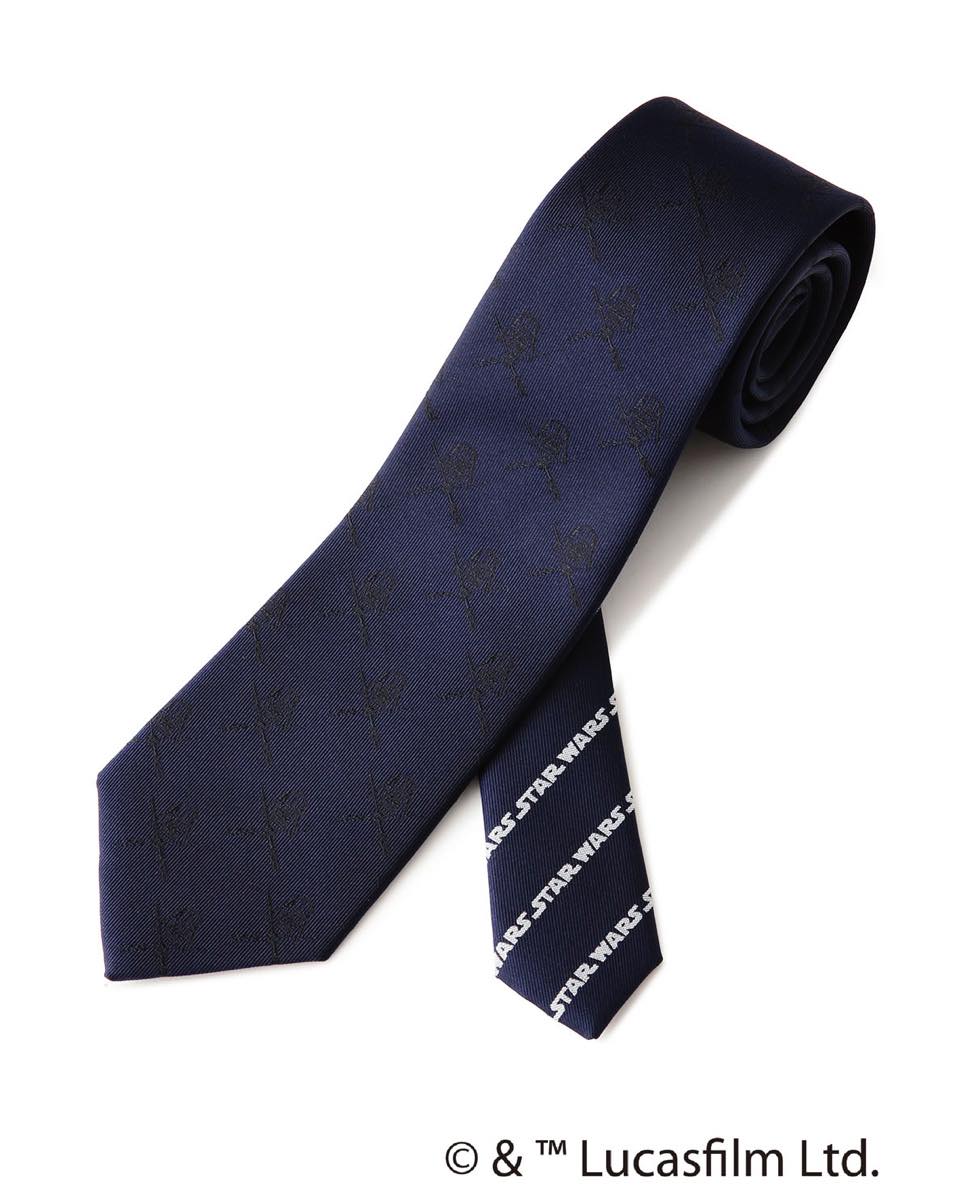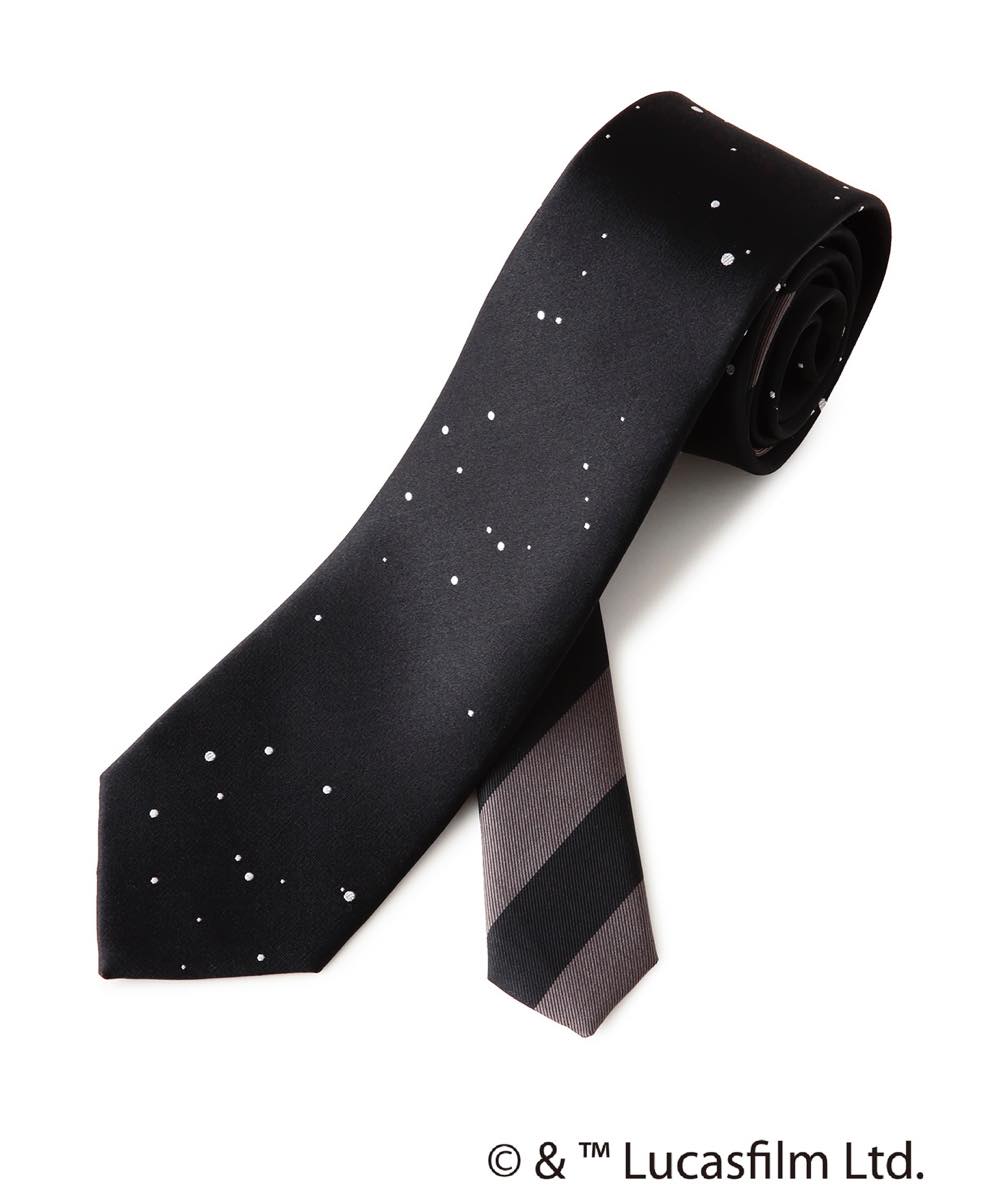 ネクタイは2種類のデザインを用意。「ギャラクシーモチーフ クレリックタイ」は、『スター・ウォーズ』の世界を象徴するスターフィールドを表に、小剣はレジメンタルストライプ、裏地に歴代のキャラクターたちを配したデザインです。