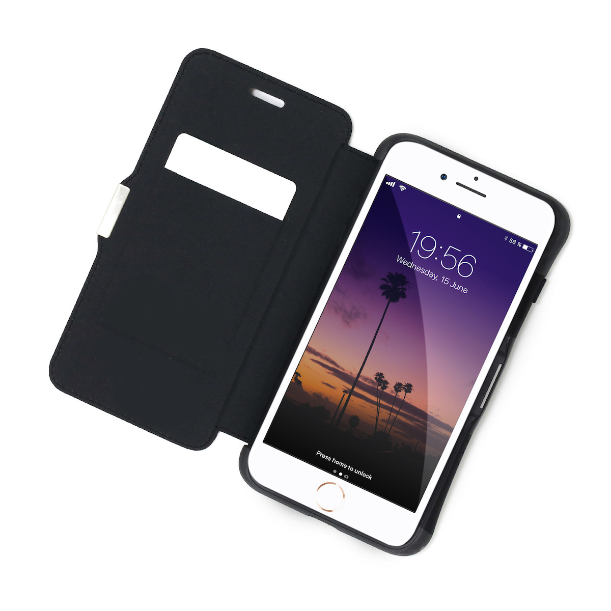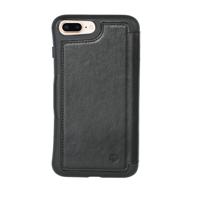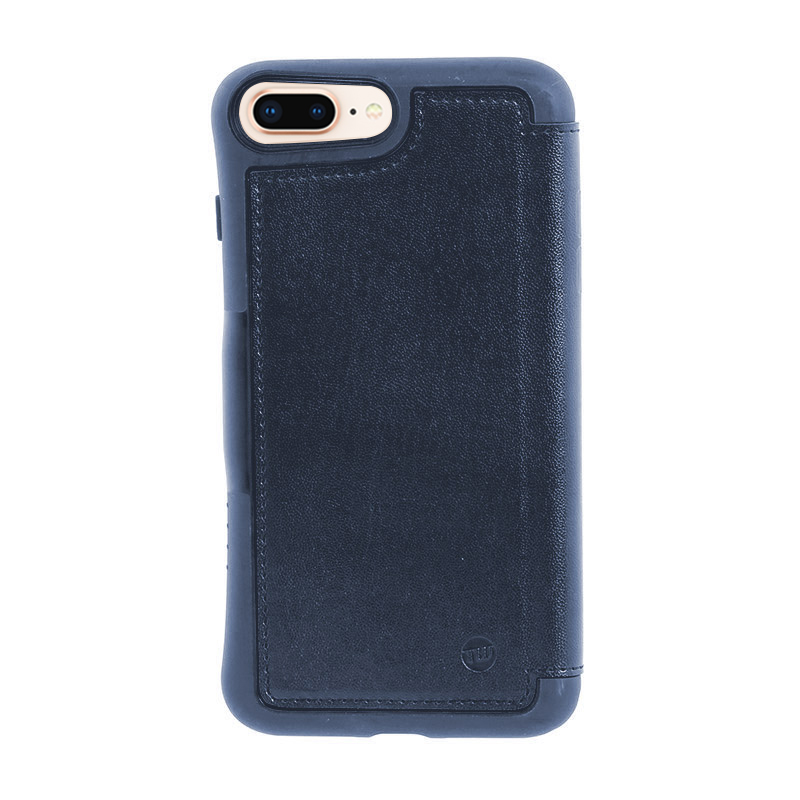 「HYBRID CARD FOLIO 衝撃吸収・手帳型ケース」は、iPhoneX用と8 Plus、7 Plus兼用の2サイズが、それぞれブラックとネイビーブルーの2色でラインナップ。