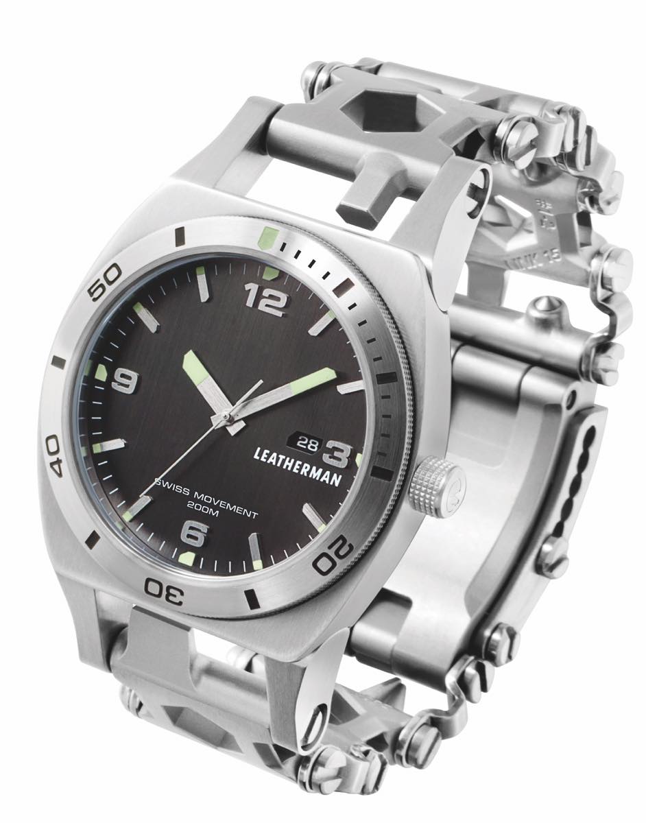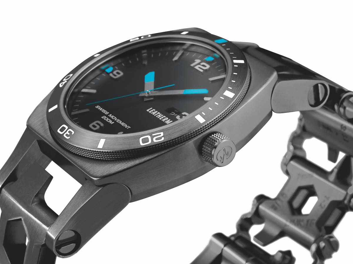 一見モダンなスポーツウオッチを思わせる「TREAD TEMPO」ですが、そこには驚きの機能が満載。ブレスレットを構成するパーツはそれぞれドライバー、レンチ、セーフティカッター、ボトルオープナー、ガラス割りなどの工具の機能を搭載しており、なんと30機能ものツールを持ち合わせます。パーツの取り外しも自由なので、必要なツールを残して自分好みにカスタマイズする楽しみも。