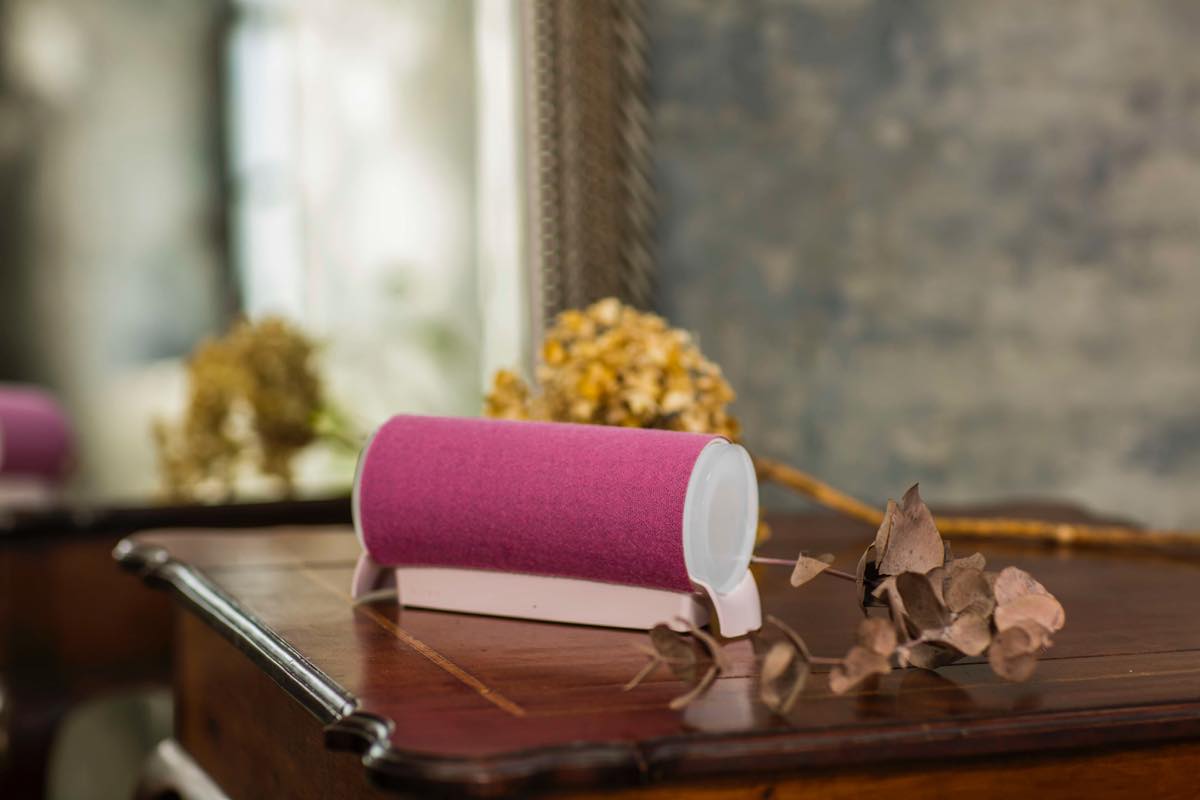 スピーカー本体はホワイト・ピンク・ブラウン・ブラックの4色ですが、スピーカーを覆うスピーカーグリルはピンク・緑・グレーなど10色を揃え、好みに合わせて色を変更できます。季節の移り変わりに合わせてカラーチェンジ、寝室で使いたいからダーク系にチェンジなど、気分やインテリアに合わせて気軽にスタイリングできるのは嬉しいですよね。