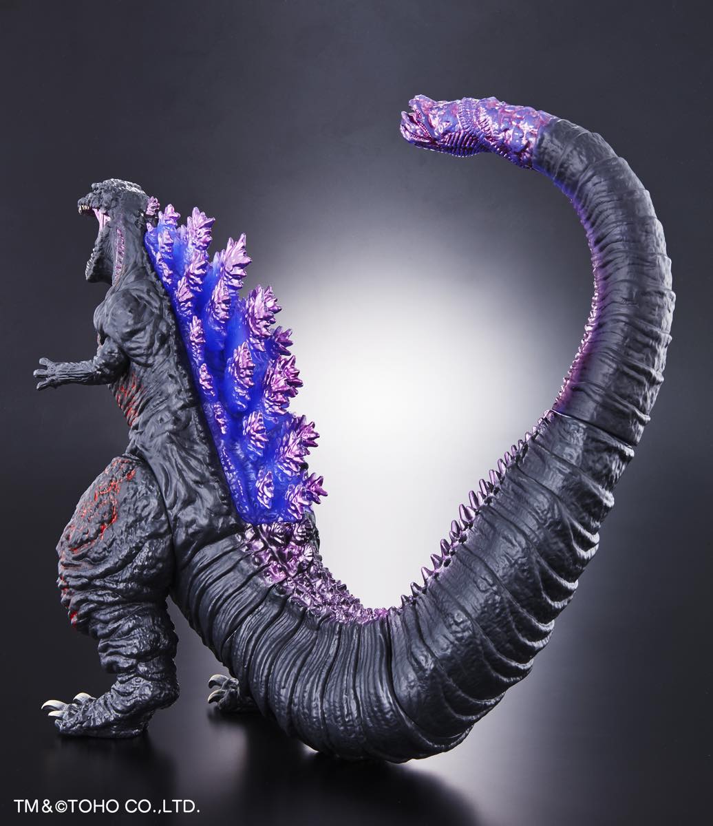 また、尻尾の長さを更に長くし、背ビレに加え尻尾の素材もクリアパーツに変更し、彩色を追加することで、凄絶な破壊力を持つ熱線放射をする際に青紫に光る様子を再現されています。価格は7560円。
