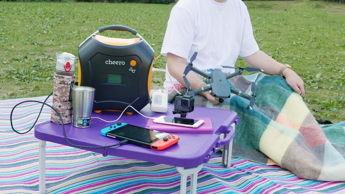 「cheero Enargy Carry 500Wh」は一般的なスマホだと約50回、テレビなら約4時間、ノートPCは約20時間の連続使用が可能となっています。日本の電化製品に合わせた電圧100Vの出力が可能で、超大容量ながら重さはわずか5.4kg。サイズも270mm×315mm×幅170mmとコンパクトです。