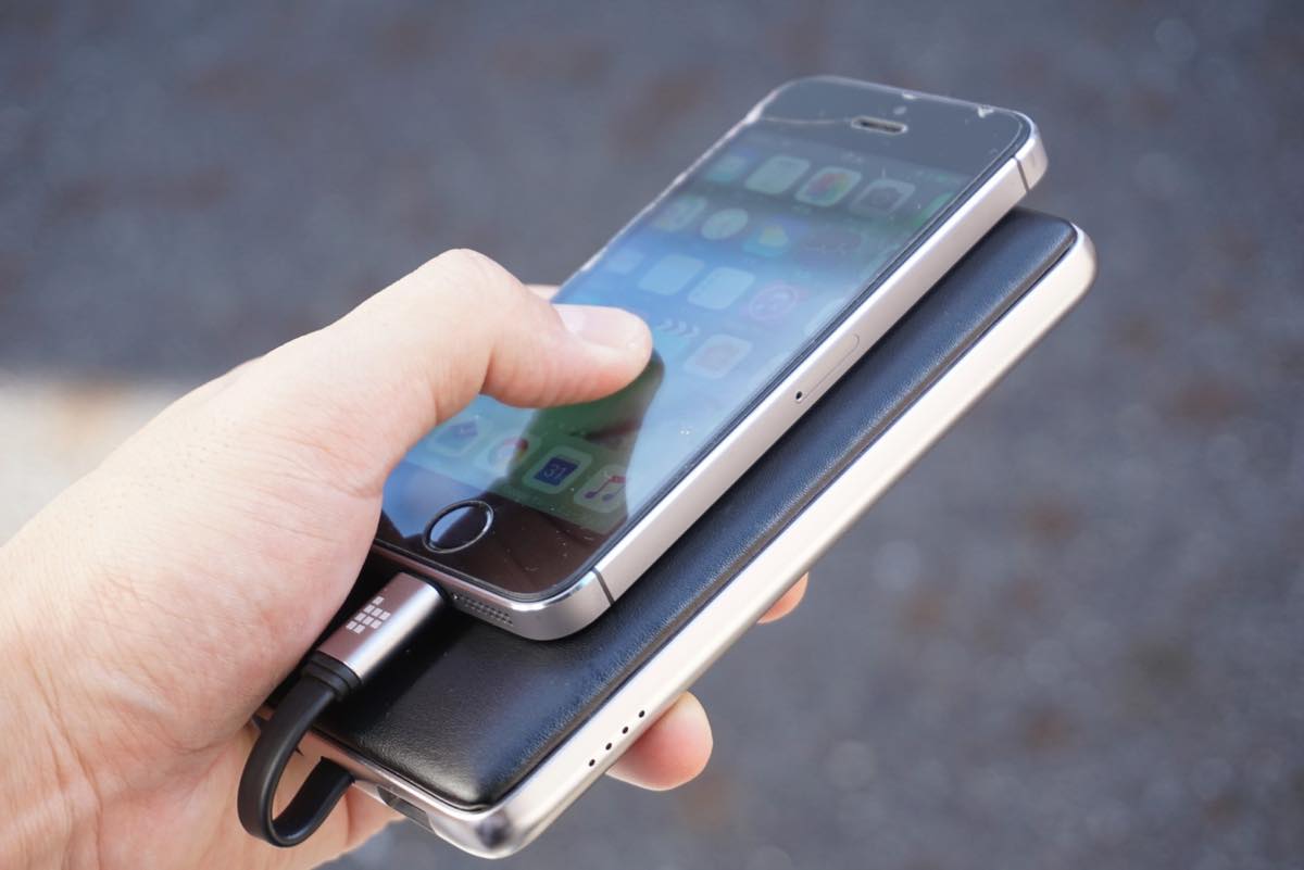 Lightningケーブルを内蔵しており、iPhoneを充電しながら“重ね持ち”するのにぴったりのデザインです。さらに、iPhone 7/7 Plus/8/8 PlusほかAndroidデバイスなどを3台同時に充電することも可能なんです。