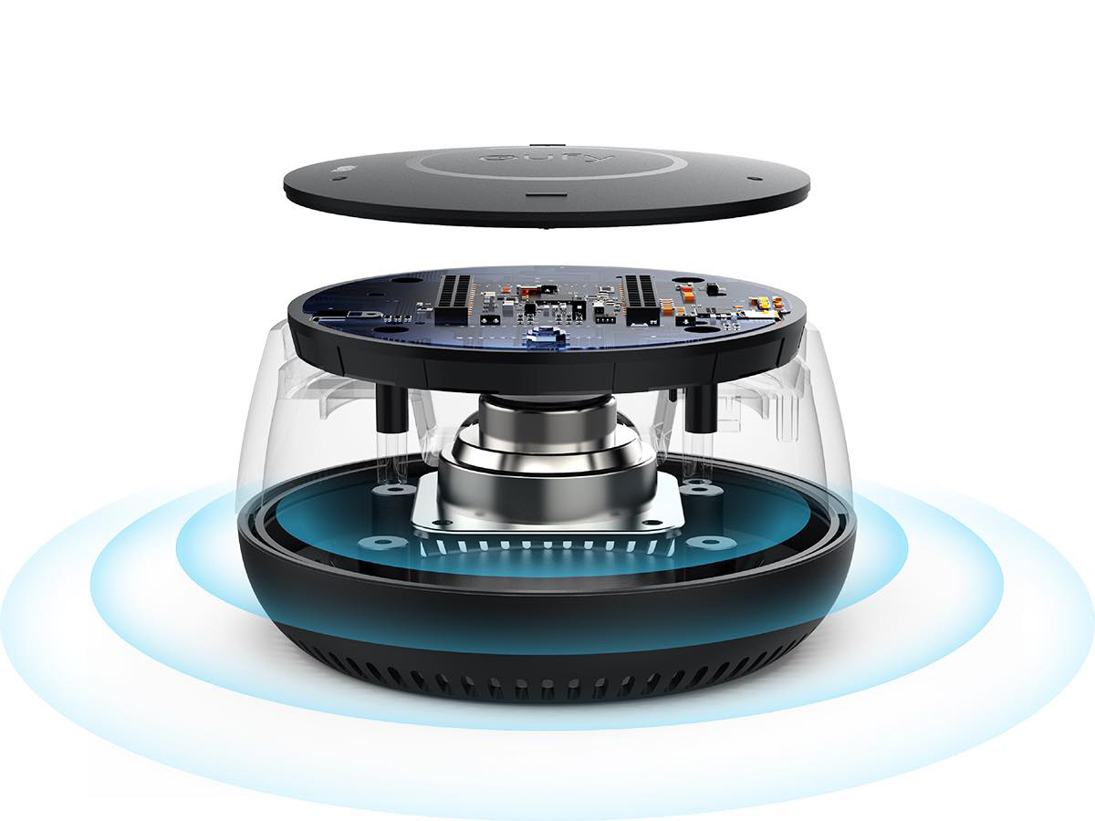 「Eufy Genie」に話しかければ音楽再生やニュースやスケジュールの読み上げ、タイマーやアラームのセット、スマート家電の操作など、できることは実に多彩。気になるのはその音声認識能力ですが、広範囲の音を検知するとともに余分なノイズを排除。さらに、エコーキャンセラー機能もあるので音楽再生中や音声プロンプトの途中でも声を認識できます。