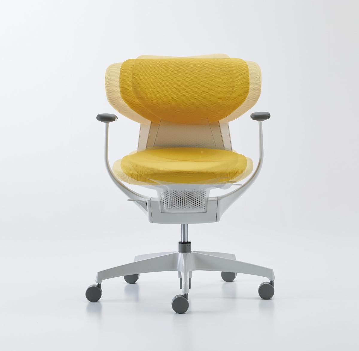 “座るを解放する”というコンセプトの下に生まれた「ing」、ポイントは座った状態でも体の動きを止めないこと。座る人の姿勢や微細な動きに合わせて360°自由にスイングする「グライディング・メカ」が、前後傾、左右傾、斜めのひねりまでしなやかに追随、座面がスイングすることで心地よいリズムが生まれ、 体と脳を活性化するというわけです。