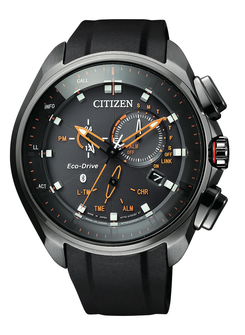 カラーリングテーマは、エコ・ドライブを象徴する「太陽」。2016年の数量限定モデルをベースに、太陽が創りだす情景の中から新しい一日が始まる日の出をイメージしたデザインが施されています。「エコ・ドライブ・Bluetooth」は、公式アプリをインストールすると、なんとスマートフォンとリンク。自動時刻修正はもちろん、世界316都市への時刻修正が可能になります。