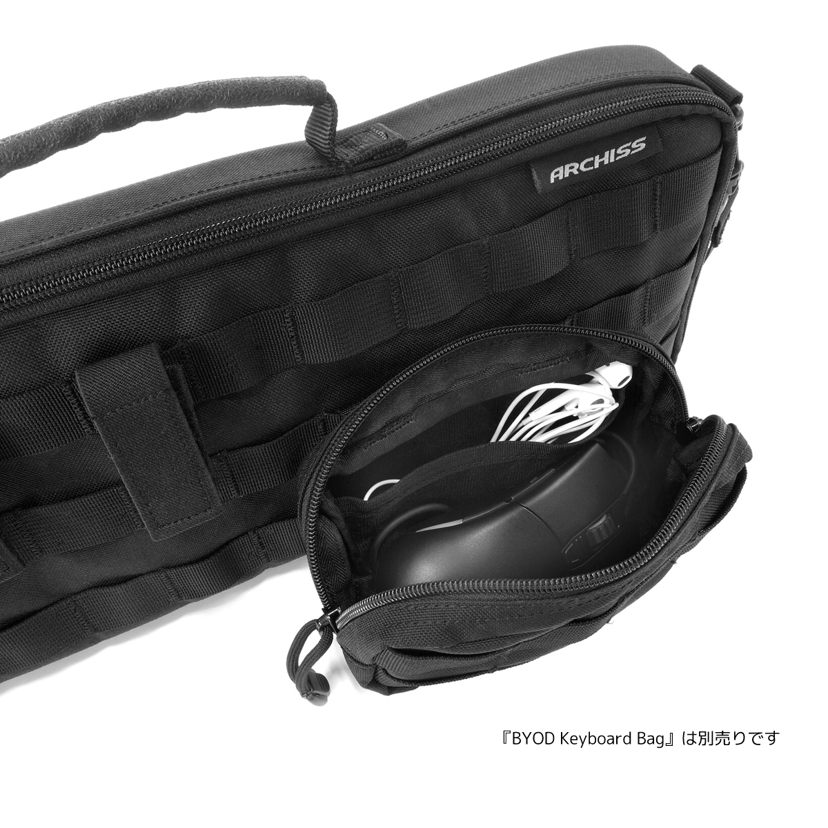アーキサイトは、自社ブランド・ARCHISS(アーキス)より、パソコン用キーボード専用バッグ「BYOD Keyboard Bag」を発売しました。“BYOD”とは、“Bring Your Own Device”の頭文字です。職場に個人所有の機器を持ち込み、それを業務に使用することを言います。いまや海外のビジネスシーンでは一般化した行為であり、その浸透率は各企業で50%以上のようです。一般的にはスマートフォンやタブレットなどの情報端末の持ち込みを指すことが多いのですが、キーボードやマウスもこの範疇にあてはまります。