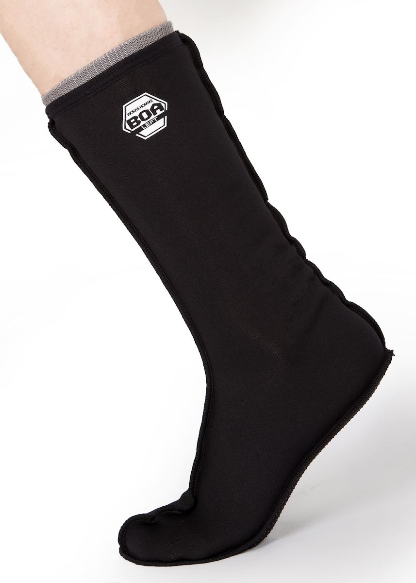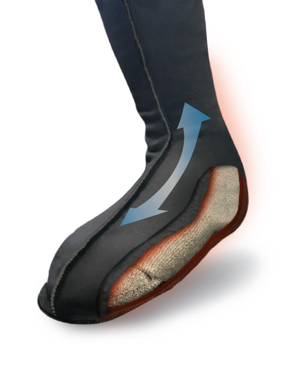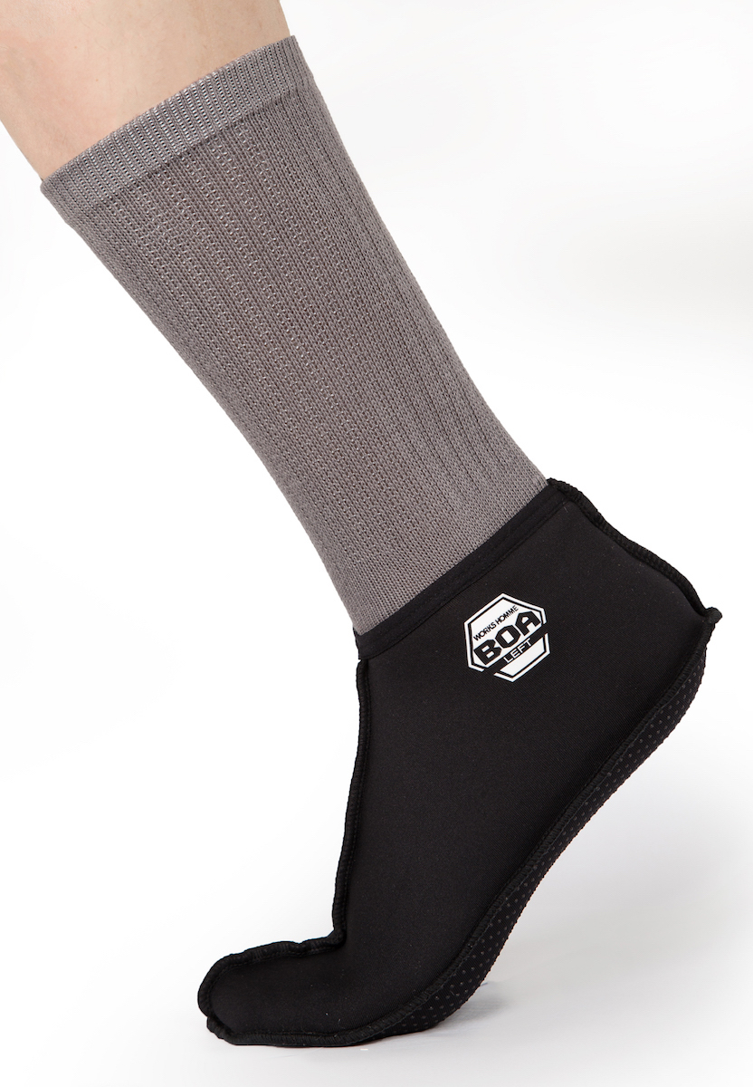 屋外作業などによる足先の冷えを防ぐ「重ね履きソックス ボア」は、靴下の上に履く靴下。その名の通り裏地は温かいボア仕様になっているので、冷えやすい足先を暖かく包み込みます。伸縮しやすいストレッチ素材で脱ぎ履きもしやすく、動きやすいのが特徴。汗を逃がす通気性素材なのでイヤなムレも抑えて履き心地も快適です。