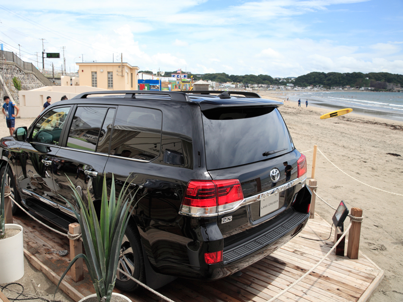 そんなニュー200シリーズのお披露目は、鎌倉は由比ヶ浜にある「ランドクルーザービーチハウス in JAPAN」で行われました。8月30日までの期間限定でオープンしている同スポットには、7月17日のオープン以来、すでに7000人を超える来場者が! 今夏、由比ヶ浜の注目スポットとなっています。