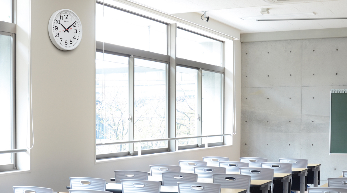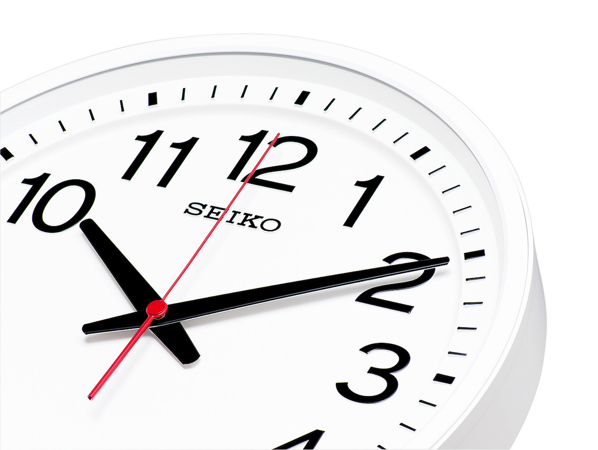 文字板を凹ませて「分針と目盛の高さを合わせる」ことにより、時計をどの場所から見ても正確な時刻を読み取りやすい構造に。また、数字の判読性を追求し、フォントメーカー・フォントワークスと共同開発したクロック専用のUDフォントを採用。誰にでも読みやすい書体となっています。万が一の落下でも割れにくく、透明度の高いアクリルカバーで、安全面への配慮も為されています。