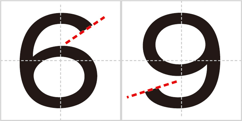 ▲「6」「9」の線の始まりと終わりを斜めにカット