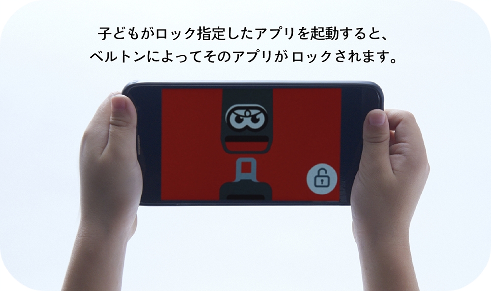 ところが、シートプレートが外れると、ベルトンは怒りモードに。アプリにロックがかかり、遊べなくなってしまうんです。「好きなアプリゲームができない!」とシートベルトを装着すれば、ロックが外れてまた遊べるように。「車内で子どもがスマホやタブレットを楽しむことが多い」ということに目を付けたアイテムなんです。