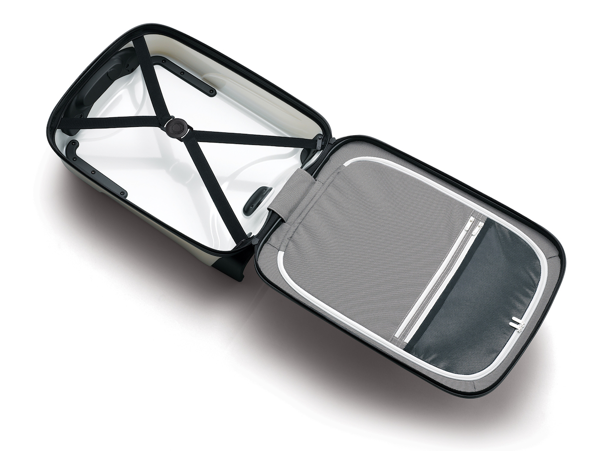 今までになかった「押す」スーツケースで、人間工学に基づいたシャーシデザインと、滑らかに動く車輪が特徴。そこに大小のトラベルケースなど複数のアタッチメントを、自分のライフスタイル、旅行の目的に合わせて選択できるのも新しい。