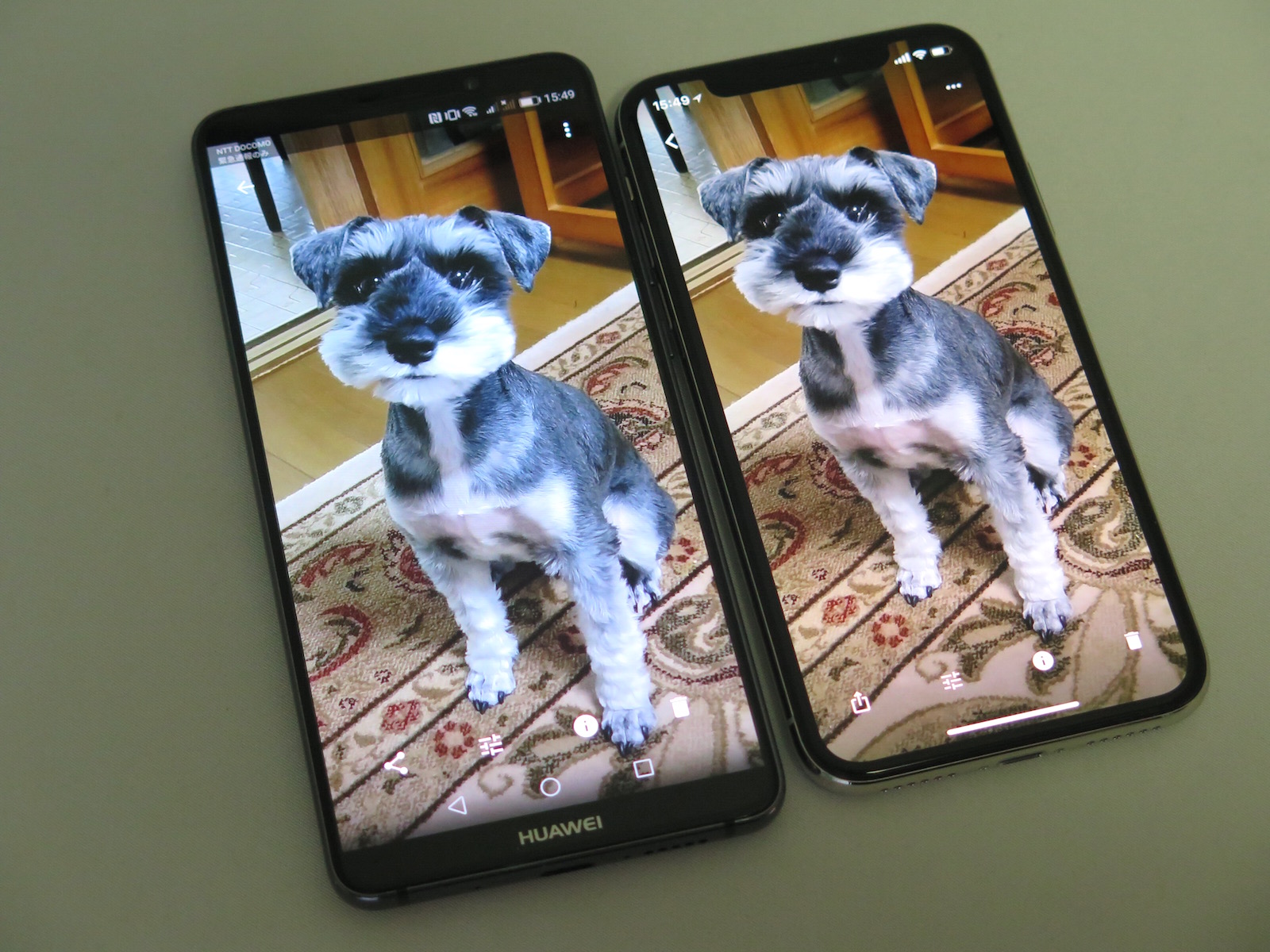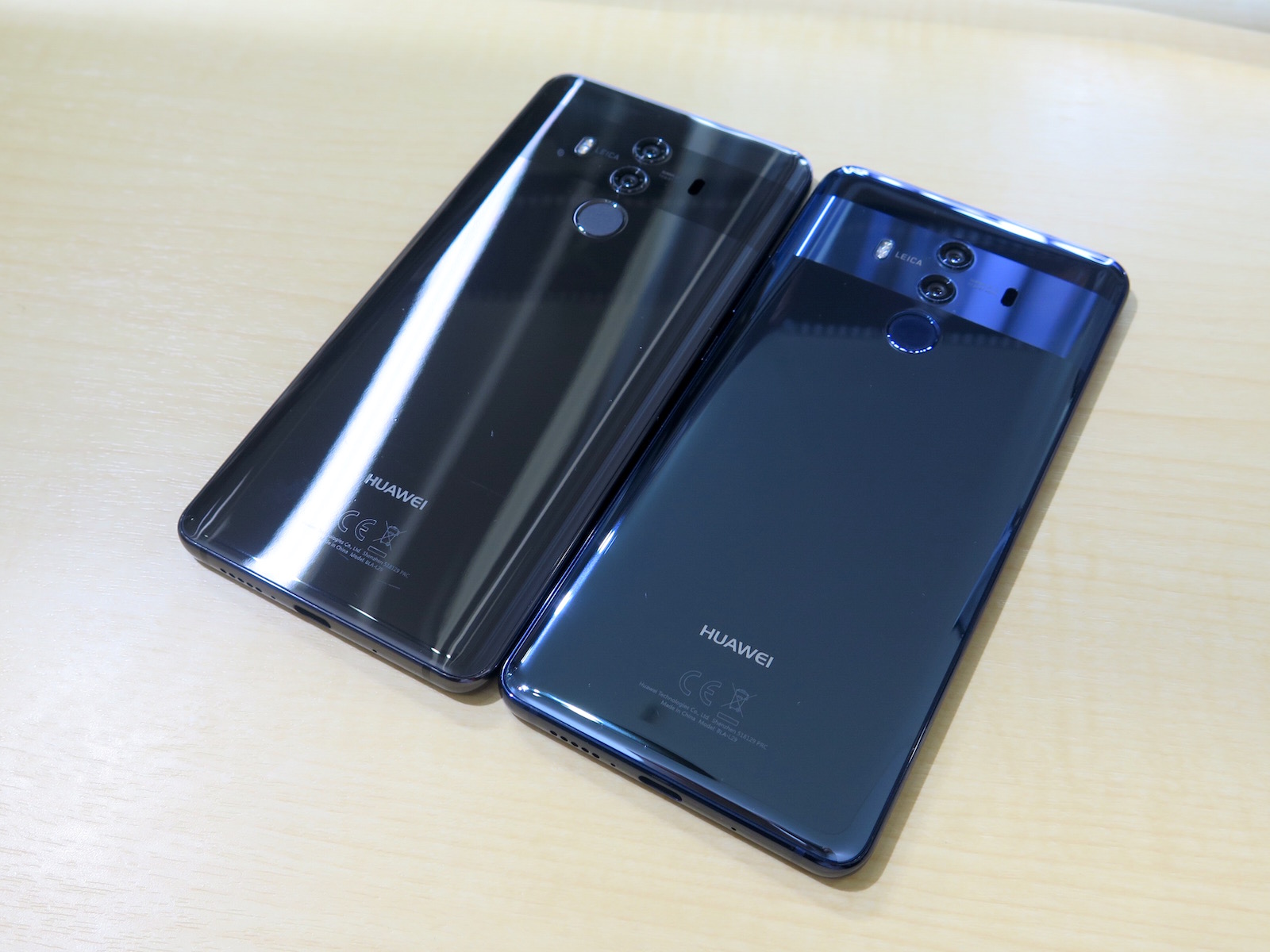 ▲5.8インチのOLEDを搭載するiPhone X(右)と画面の大きさを比べてみた。Mate 10 Pro(左)のほうがディスプレイ面積が広い